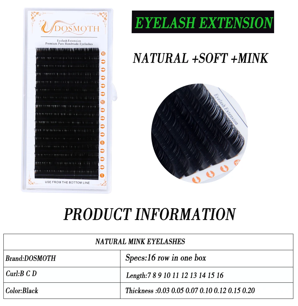 Ресницы для наращивания DOSMOTH, синтетические, изгиб B C CC D