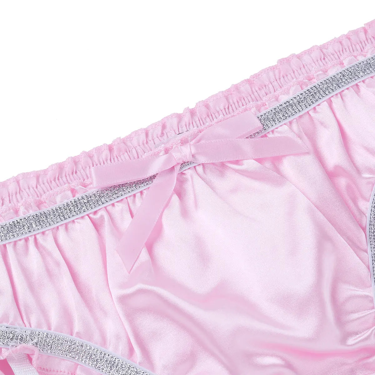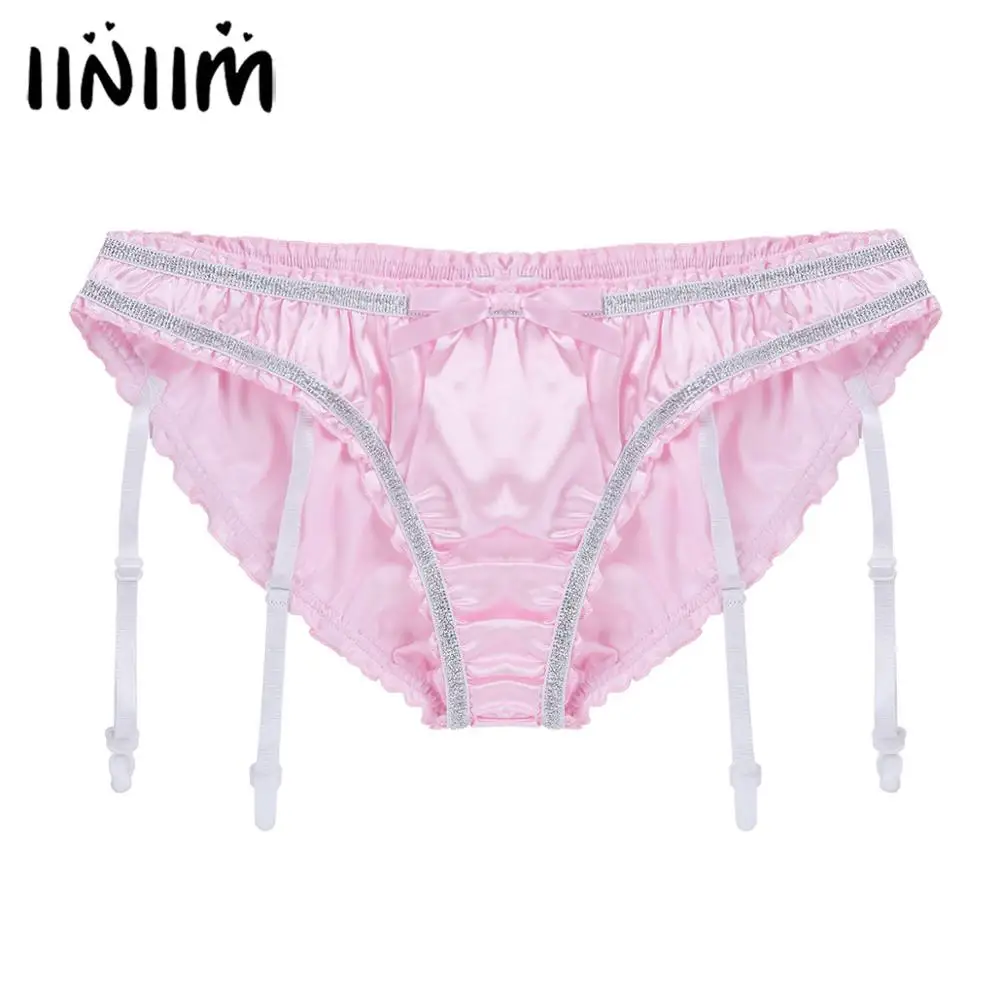 Нижнее белье мужское экзотическое, атласные трусы-брифы с треугольными чашечками, с оборками, с пластиковыми подвязками