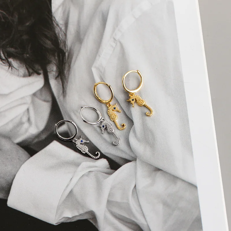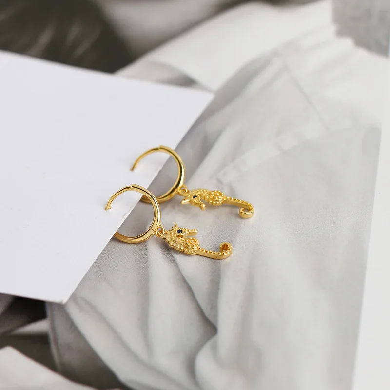 LKO Настоящее серебро 925 пробы милые серьги-кольца с морским коньк...