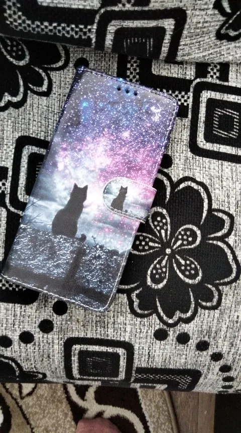 Пришел чехол быстро. упакован в бумажный пакет с пупыркой и целофан. В комплекте верёвочка на руку. Сел на oppo a5s идеально. Немного тугие кнопки. Сам чехол из толстого кожзаменителя принт нанесен качественно, полуматовый.