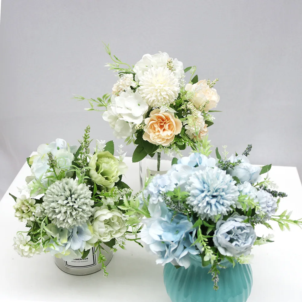 Цветы гортензии, 7 голов, искусственный букет, Шелковый Цветущий Искусственный Пион, свадебный ручной цветок, розы, украшение для середины стола