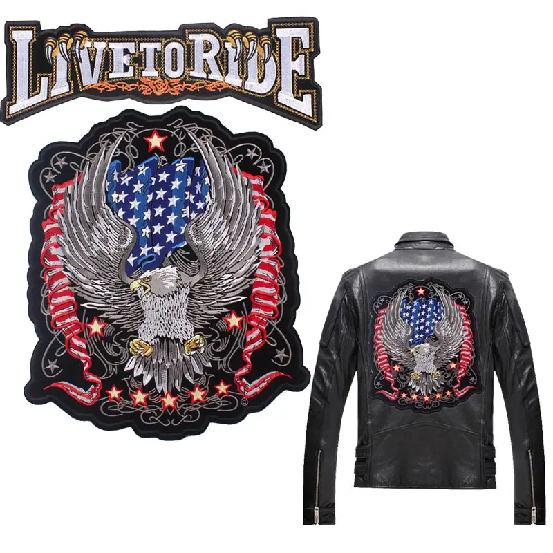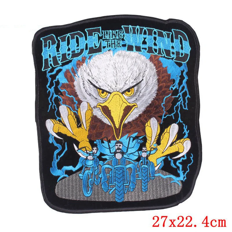 Нашивки с вышивкой орла, большие байкерские нашивки на одежду, значки с большим черепом в стиле панк, вышитая нашивка, куртка, пальто, аксессуары, полоски