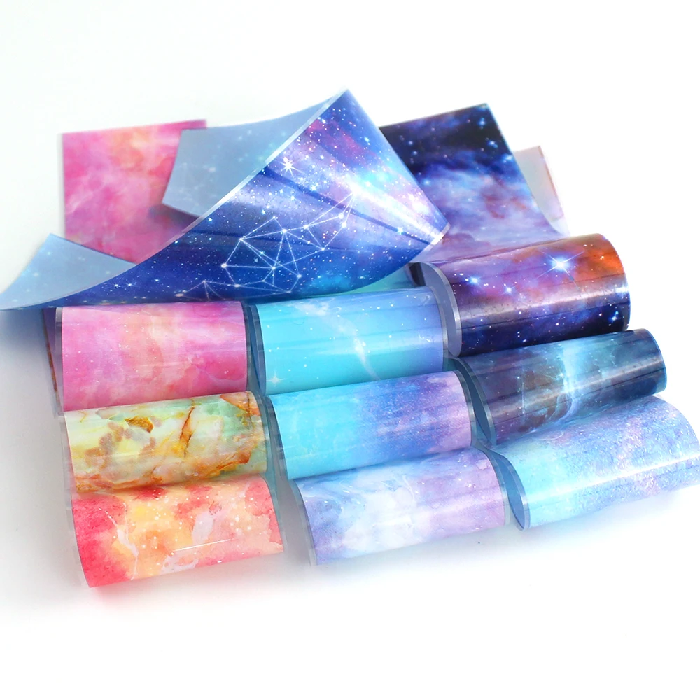 14 шт. голографическая переводная Фольга для ногтей Золотой ползунок блестящая наклейка для обертывания клейкое Звездное украшение для маникюра «сделай сам» Набор бумаги для ногтей