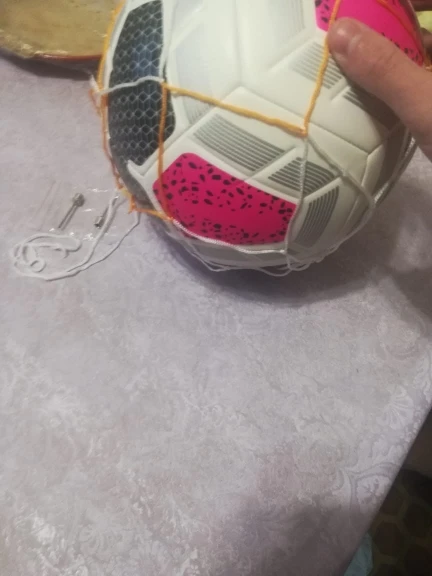 Мяч отличный, хорошо описан. Поставляется с сетчаткой и двумя пипетками для надувания. -Выгодное предложение на 10 долларов США
