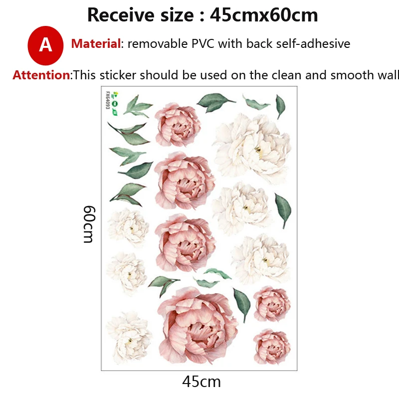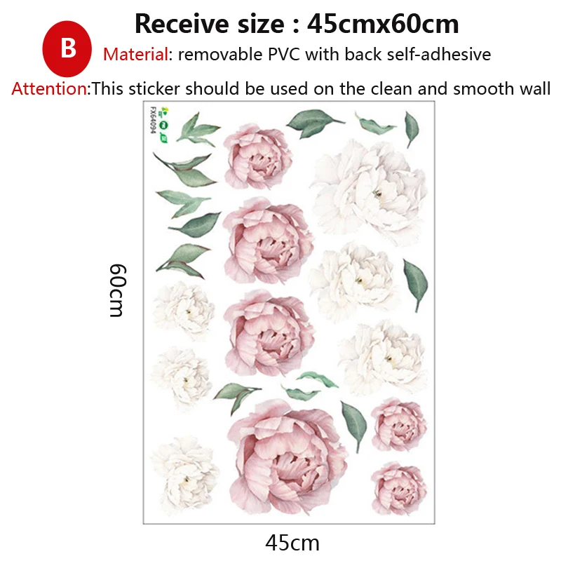 Настенные Стикеры с пионами и розами, художественные наклейки для д...