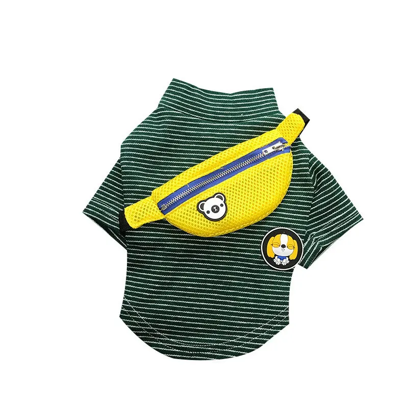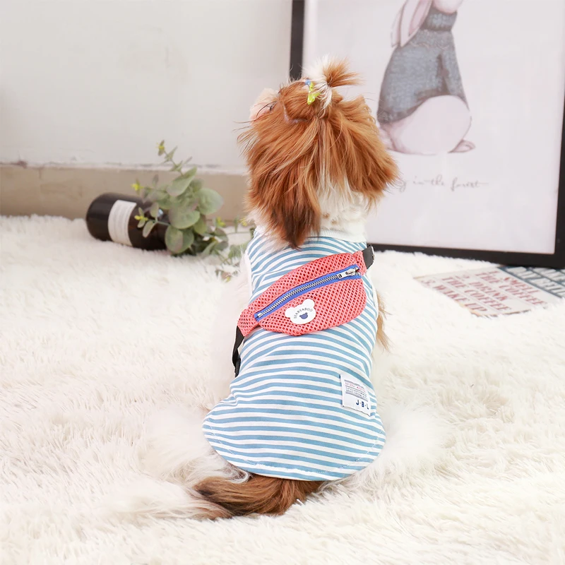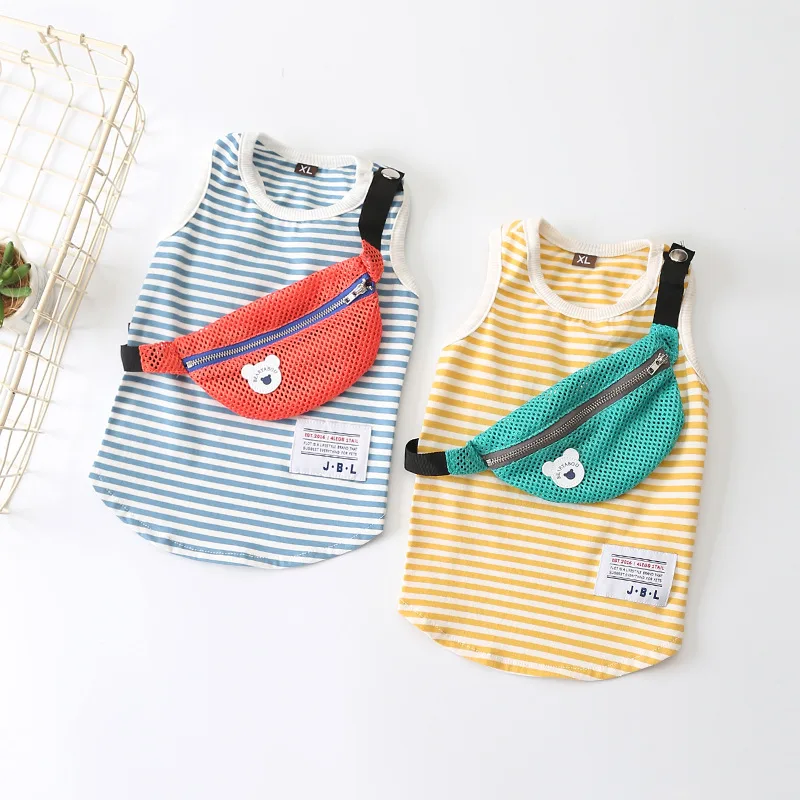 Модная одежда для домашних животных, одежда для собак, рубашка для домашних животных, хлопковые эластичные жилеты для домашних животных на весну и лето, полосатый дизайн с сумкой, декоративный жилет для домашних животных