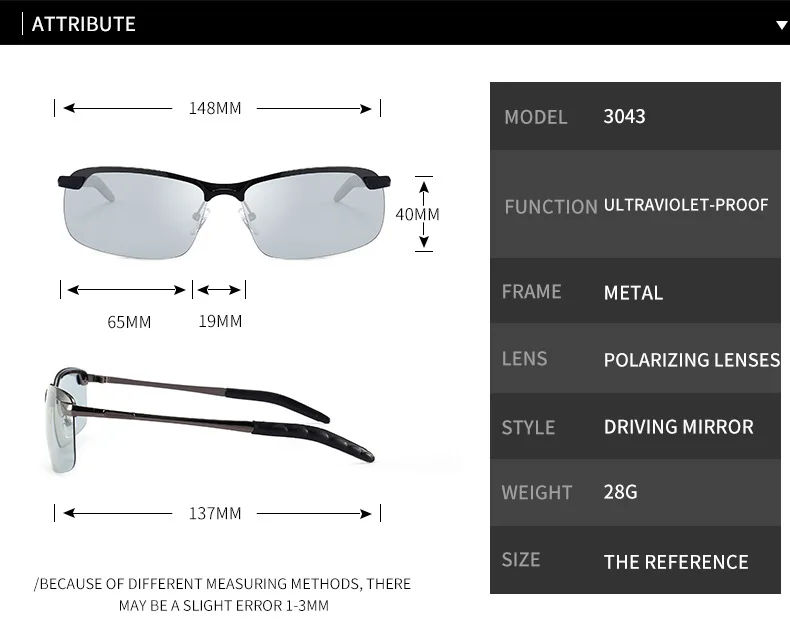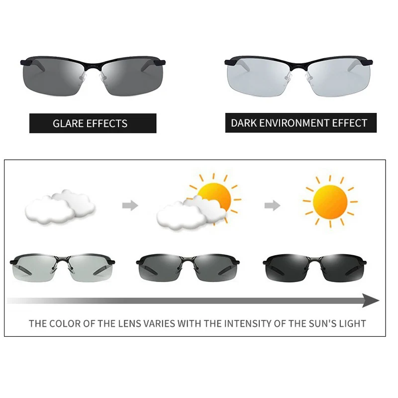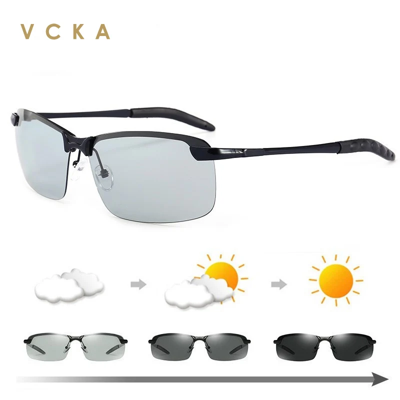 Солнцезащитные очки VCKA мужские фотохромные, поляризационные, хамелеоновые, без оправы UV400, дневное и ночное видение, для вождения