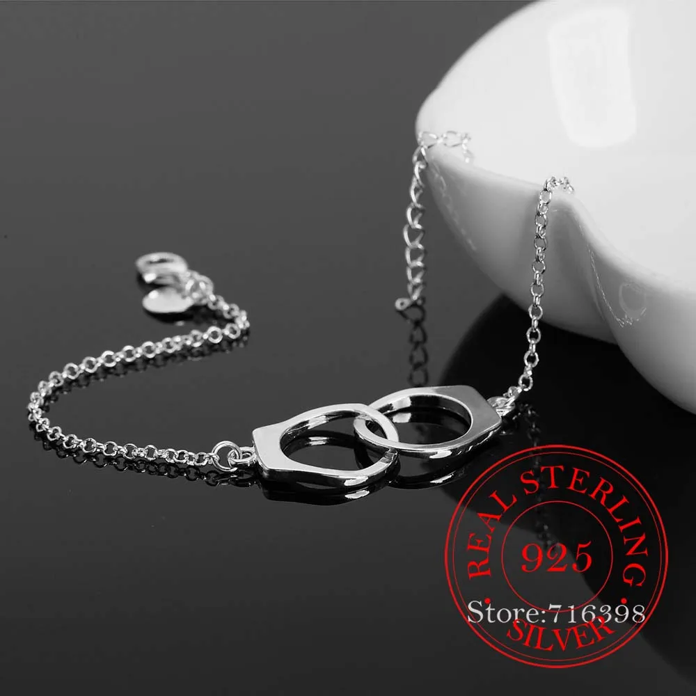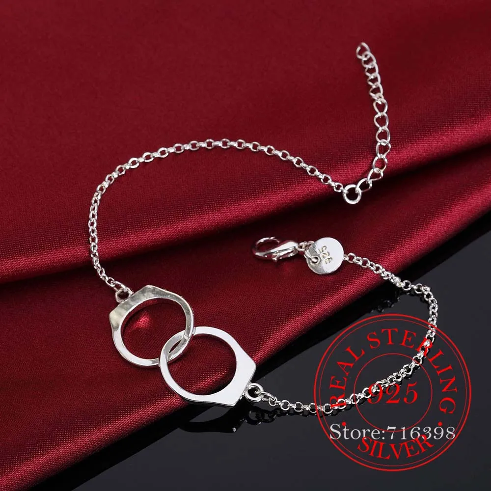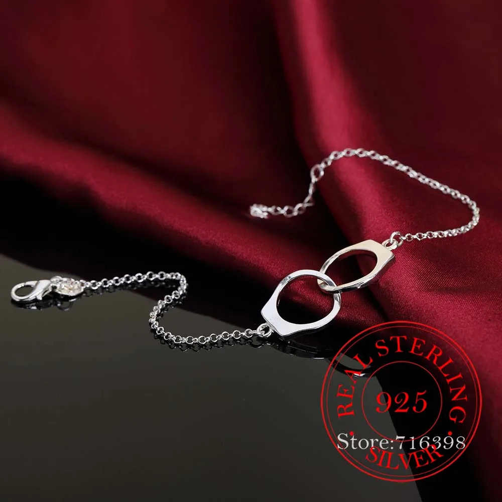 Браслет из стерлингового серебра 925 пробы в Корейском стиле, очаровательные браслеты и браслеты в виде цепочки в форме наручников для мужчин и женщин, Изящные Ювелирные украшения для вечеринок