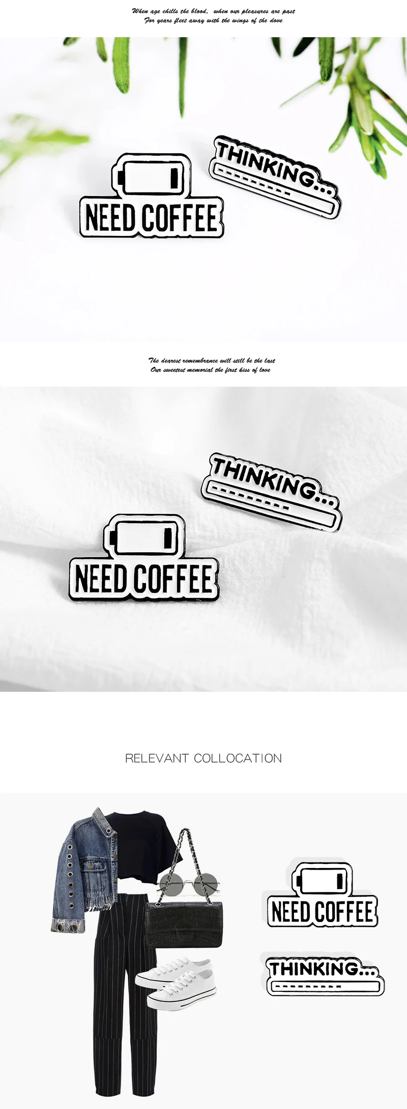 Металлическая брошь Need Coffee Power Thinking, брошь на булавке с ...