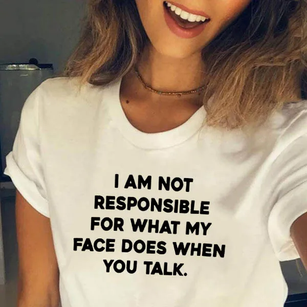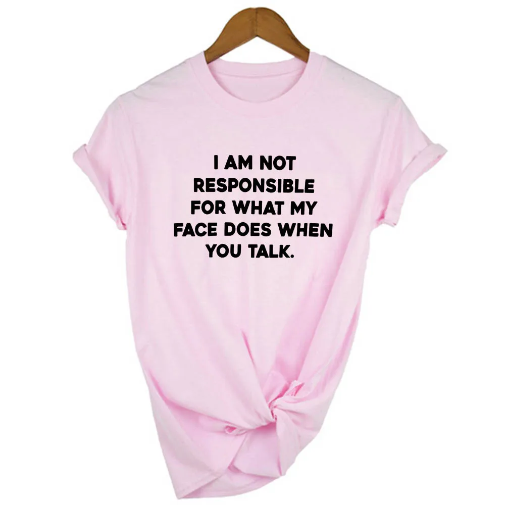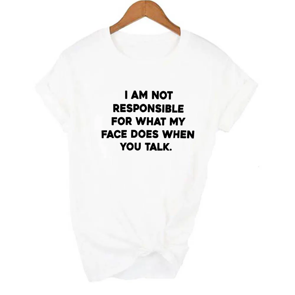 Женская футболка с круглым вырезом, в готическом стиле, я не несу ответственности за то, что мое лицо делает, когда вы говорите