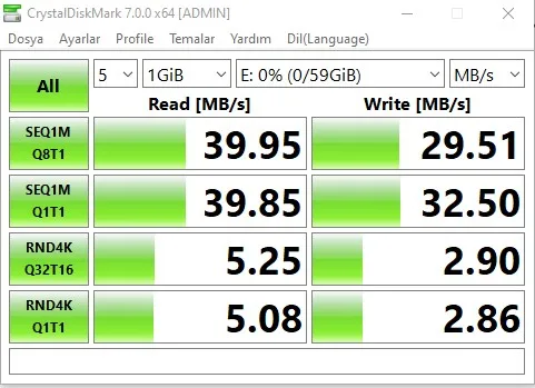 <2en> продукт неплохой, он не мог пройти 40 МБ/с./с в тестах, которые я сделал с кардридером USB 3,0, но мне жаль. Не проблема для меня, не использовать его в хорошем качестве, но он должен был видеть 60-70... Между тем доставка в Турцию в течение 12 дней 8,80 TL также налог...
