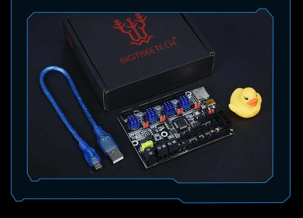 В комплект входит плата, короткий usb-кабель и резиновая утка. Визуально качество платы хорошее; Некоторые пользователи сообщают о проблемах с fan MOSFETs, но я еще не испытал.