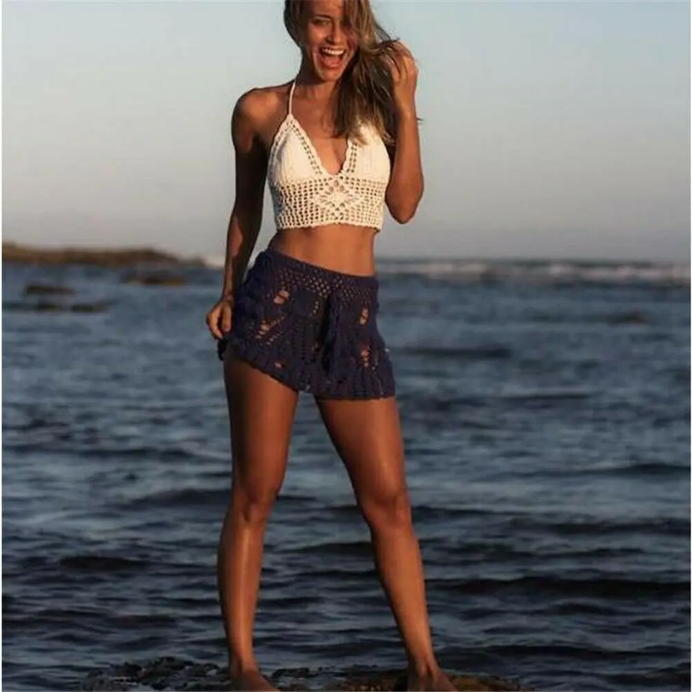 Aproms Хлопковые вязаные крючком мини-юбки в стиле бохо Летняя женская пляжная мини-юбка с высокой талией крутая бикини для девушек 2020