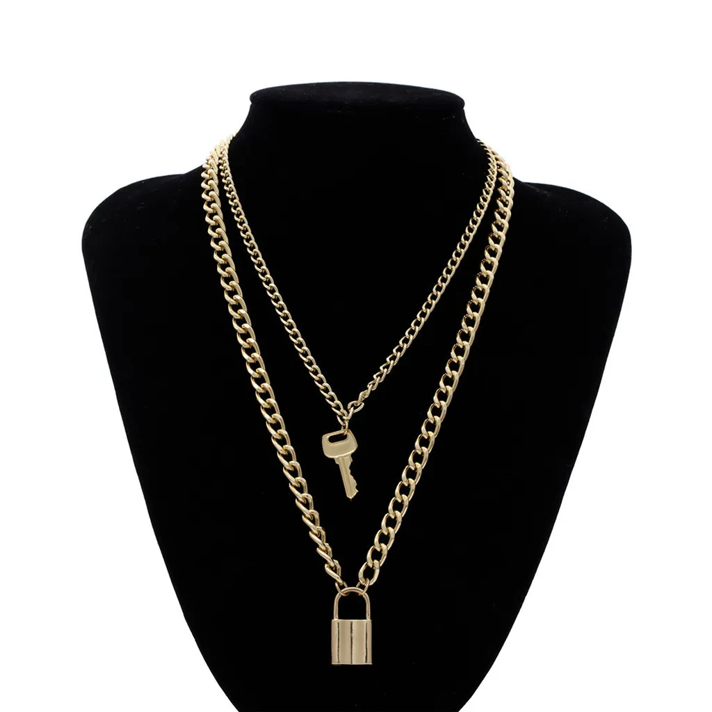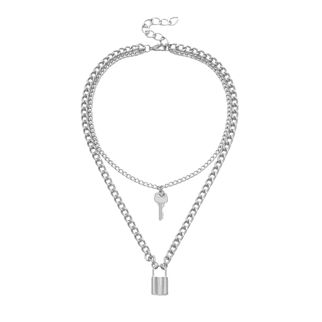 Ожерелье с подвеской висячий замок женское, модное многослойное ожерелье с подвеской замок на шею в стиле панк, бижутерия, цепи для женщин, 2020