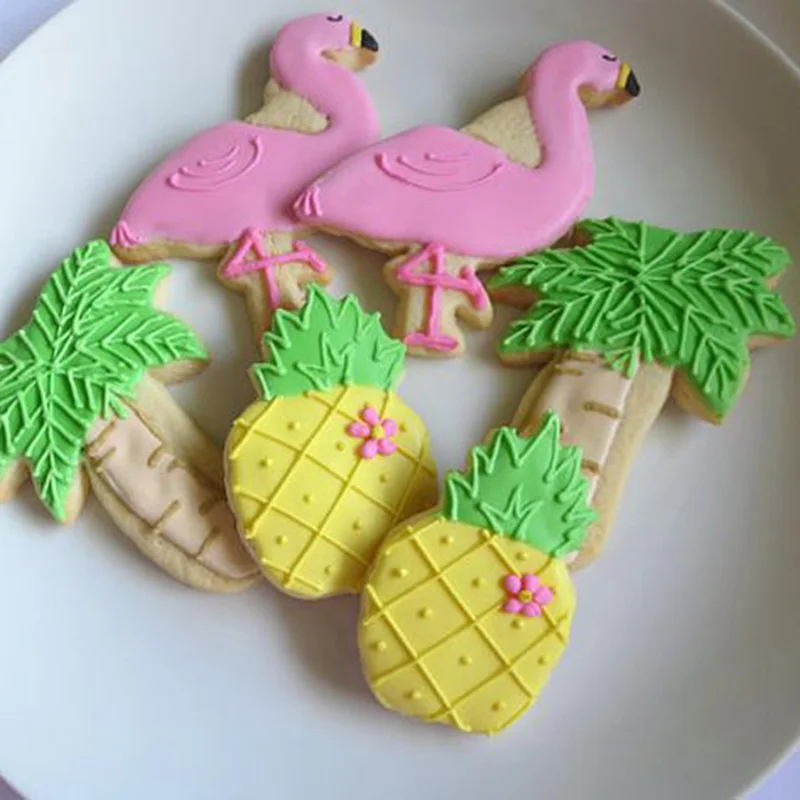 Резаки для печенья в форме Фламингоананасакокосового дерева, резаки для печенья на лето, день рождения, декор для детей, гавайская тематическая вечеринка