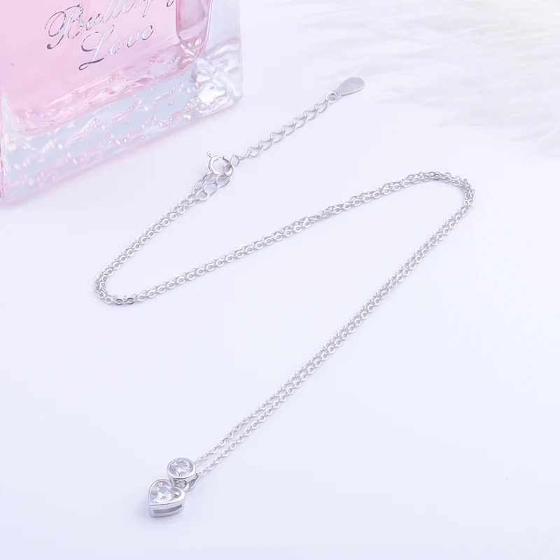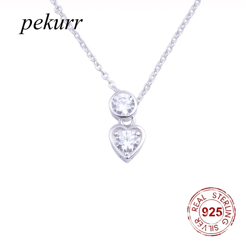 Ожерелье Pekurr женское из серебра 925 пробы с цирконием, с круглыми драгоценными камнями и сердцем, длинная Серебристая цепочка