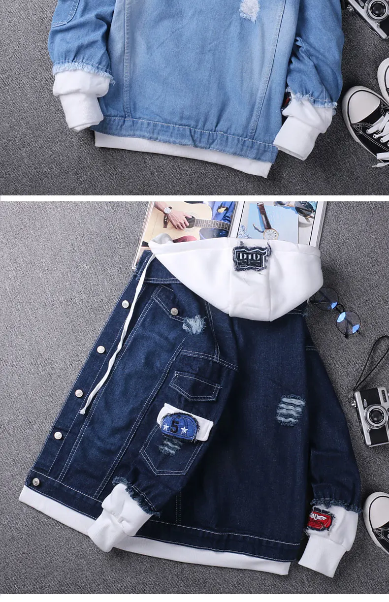 Женская джинсовая куртка, с капюшоном, в стиле хип-хоп