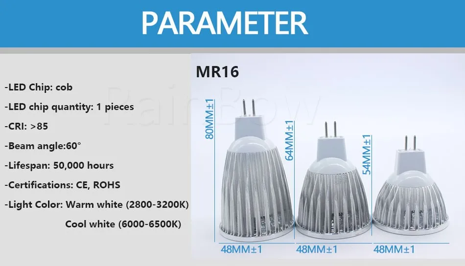 Напряжение: 85-265 в(MR16 is DC 12v)