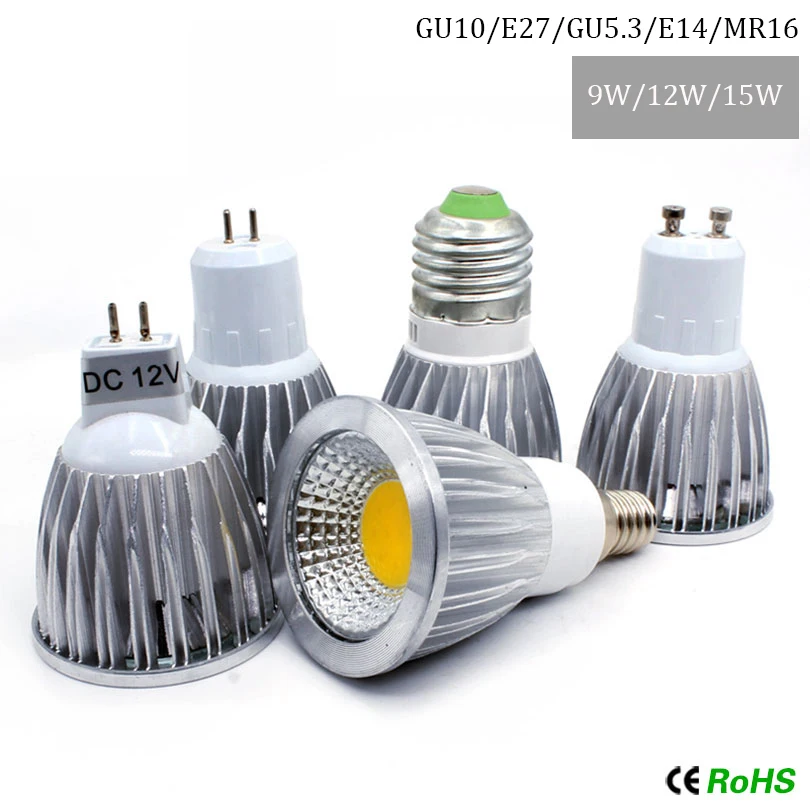 Светодиодный светильник MR16 DC12V с регулируемой яркостью, Светодиодный точечный светильник E27 E14 GU10 9W 12W 15W AC 220V 240V, Яркий Светодиодный точечный светильник, лампада Bombillas