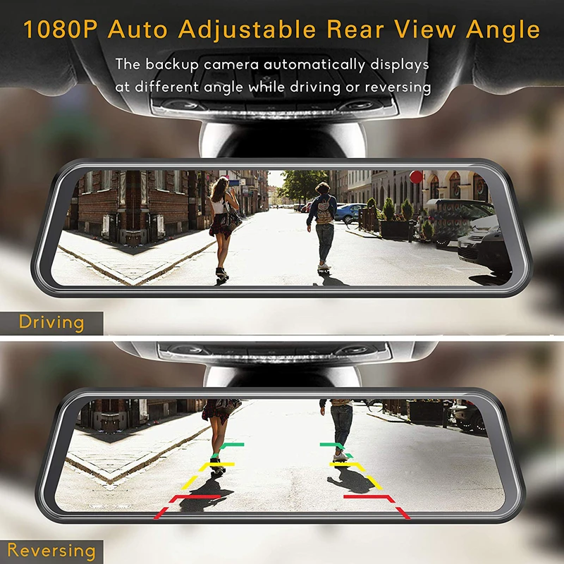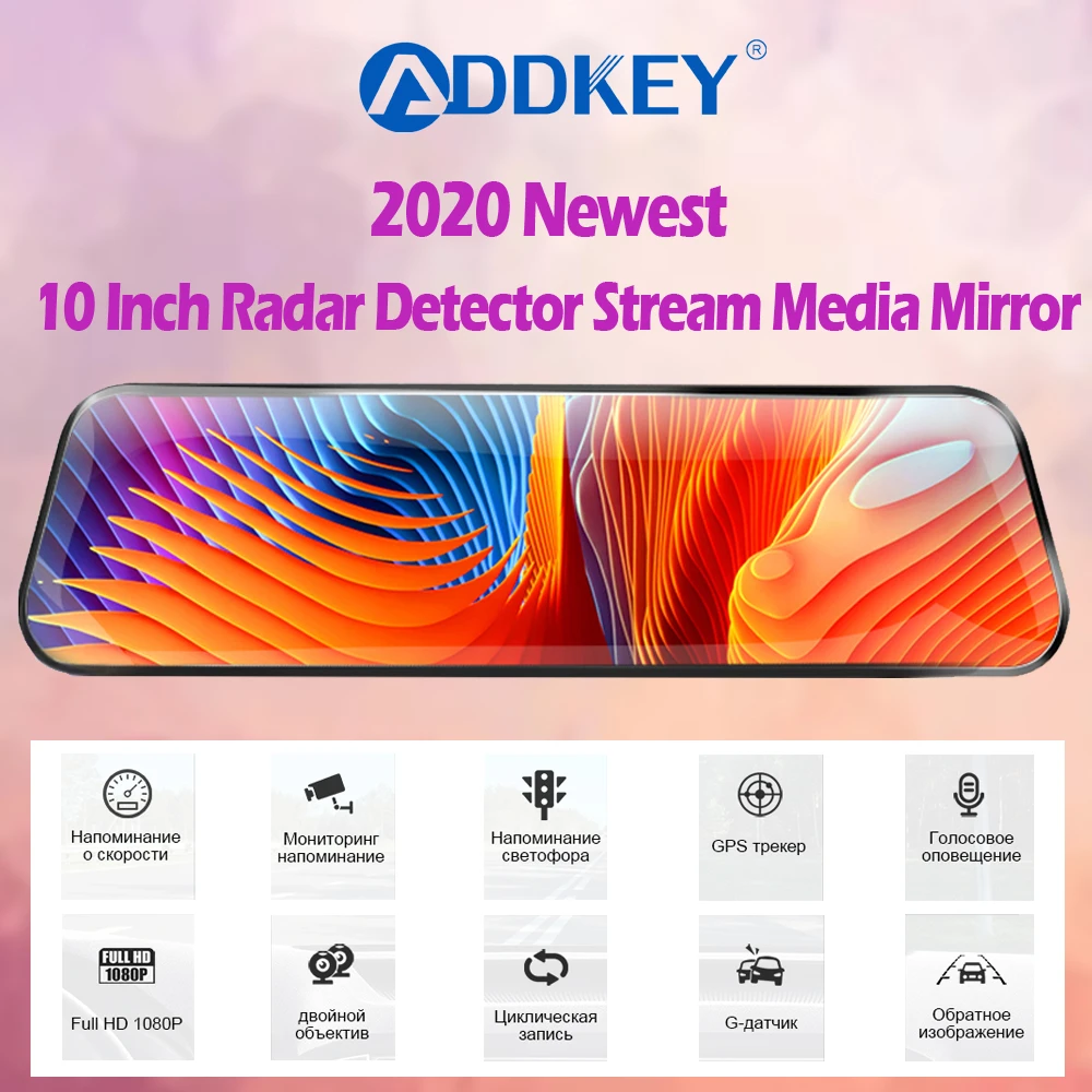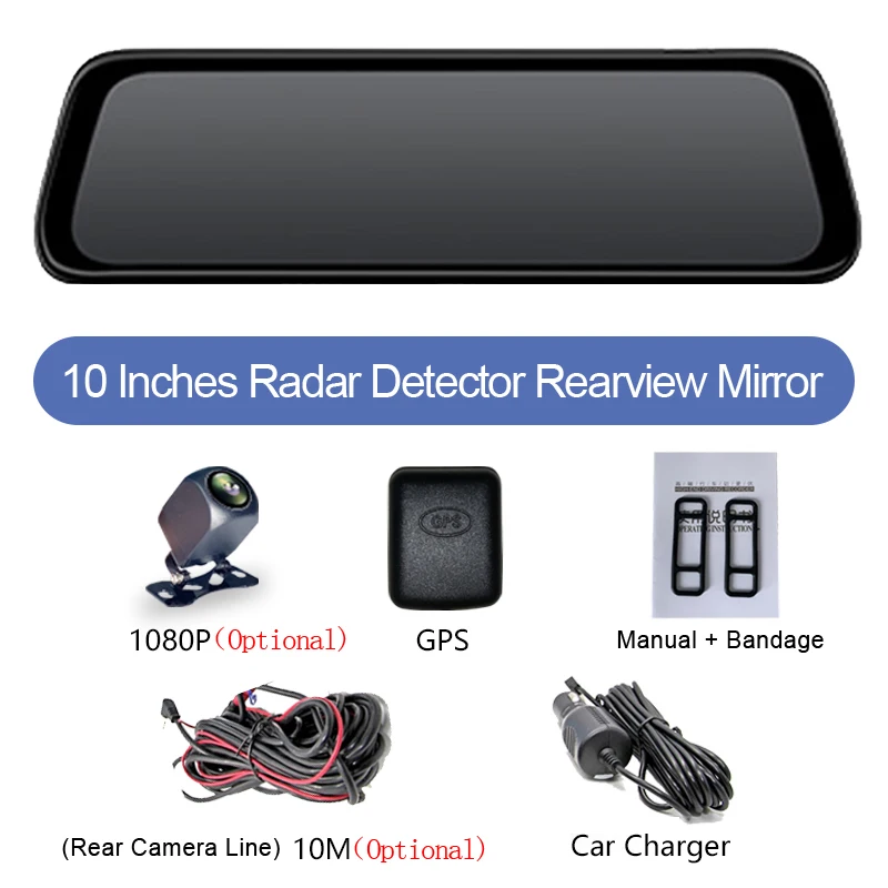 Видеорегистратор 3 в 1, на зеркало заднего вида, с двумя объективами, 10 дюймов, 1080P