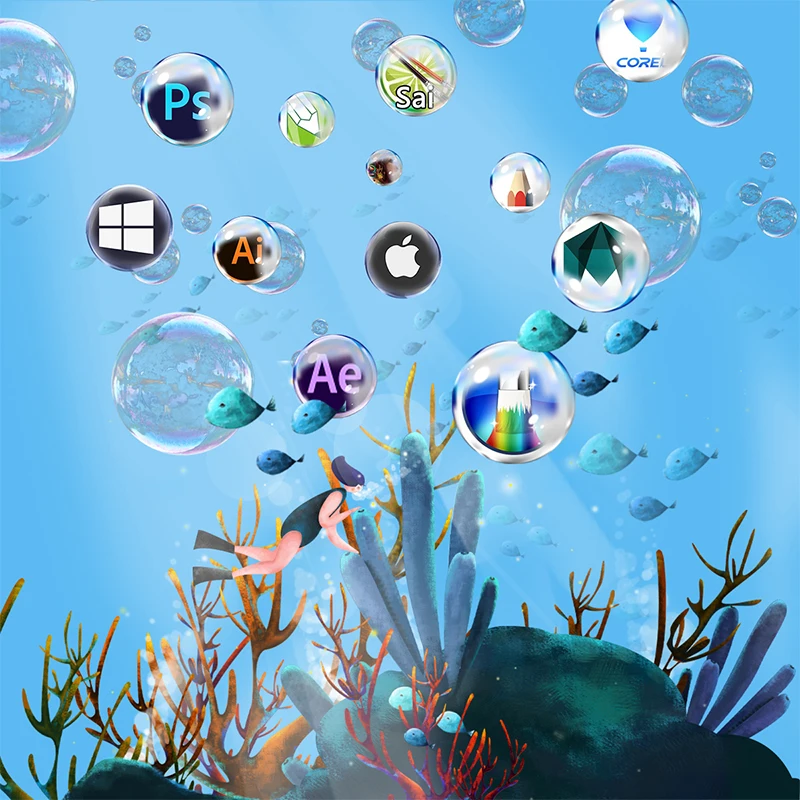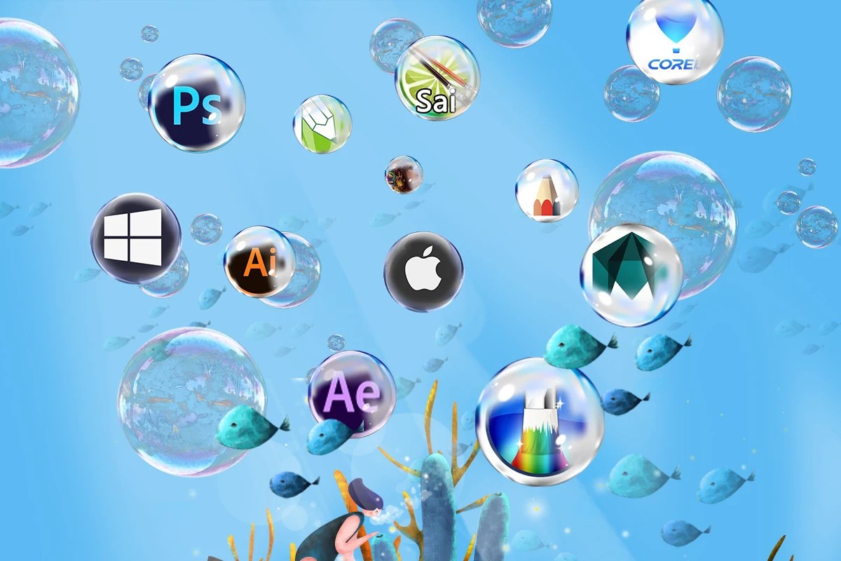 Совместим с большинством программ для рисования, таких как Adobe Photohop, artist, Clip Studio, Lightroom, Sketchbook Pro, Manga Studio, Corel paint er, FireAlpaca, OpenCanvas, Paint Tool Sai2, крита и так далее.