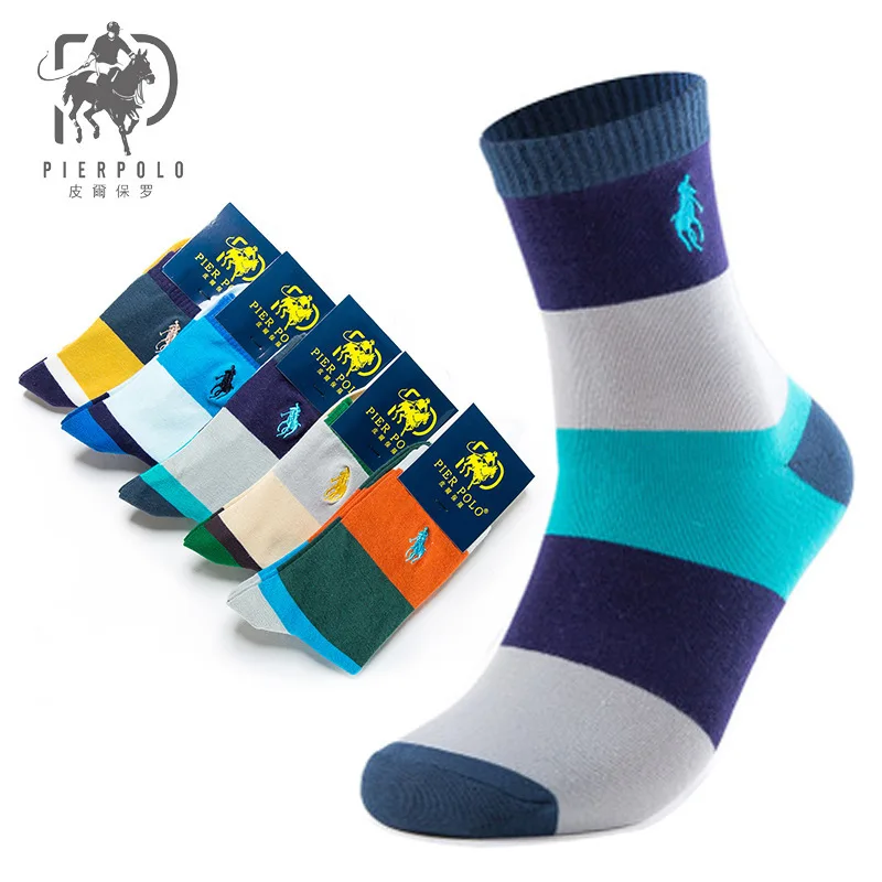 Высокое качество PIER POLO брендовые зимние хлопковые мужские носки с вышивкой, деловые Повседневные носки, мужские Разноцветные носки, оптовая продажа, размер 39-45