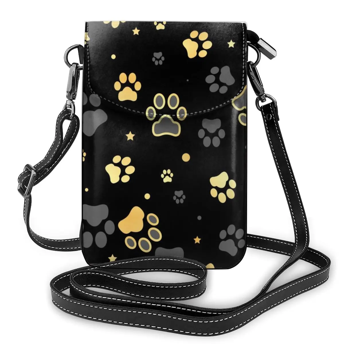 Модная женская сумка через плечо с золотым принтом собачьих лап и звезд, Маленькая женская сумка, настоящая простая Женская Повседневная сумка-мессенджер