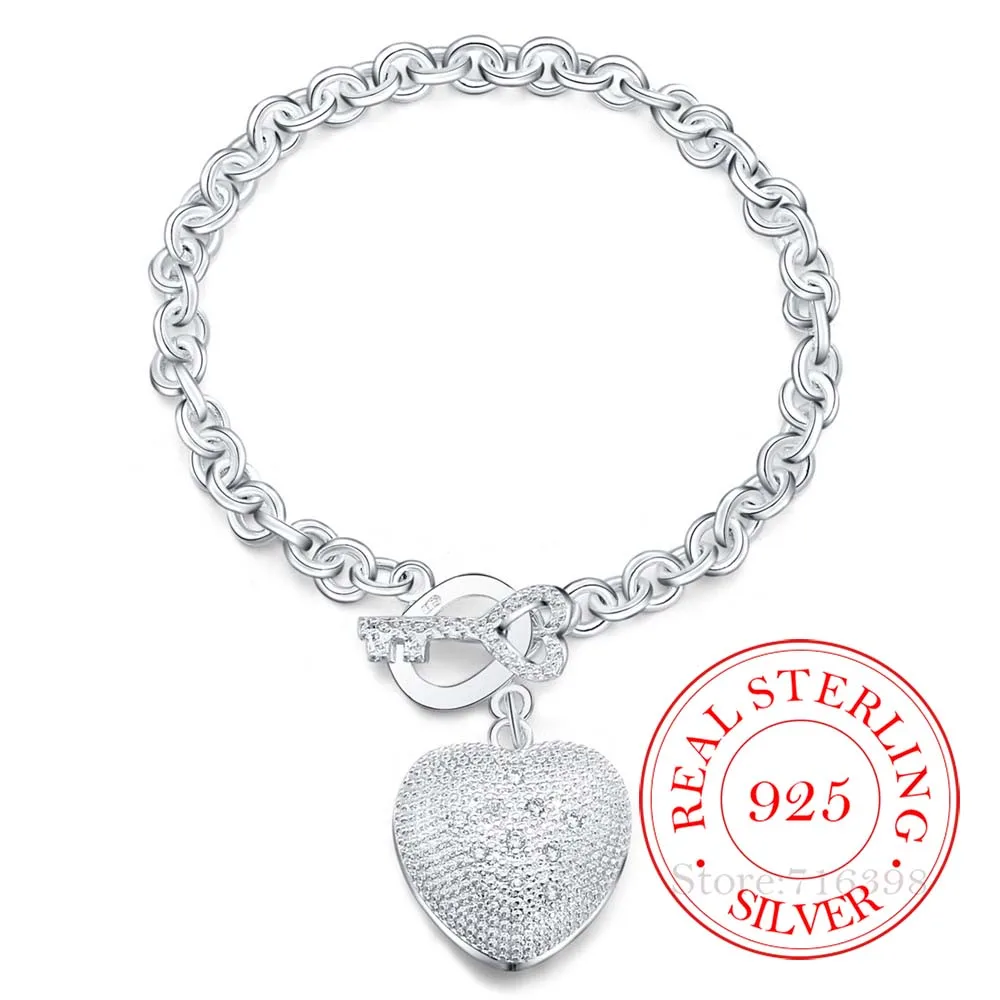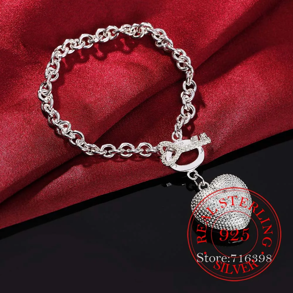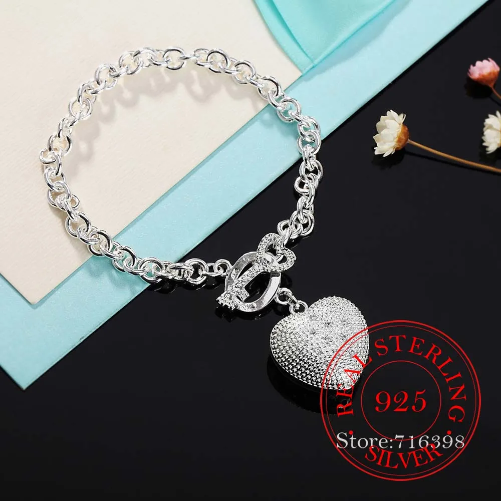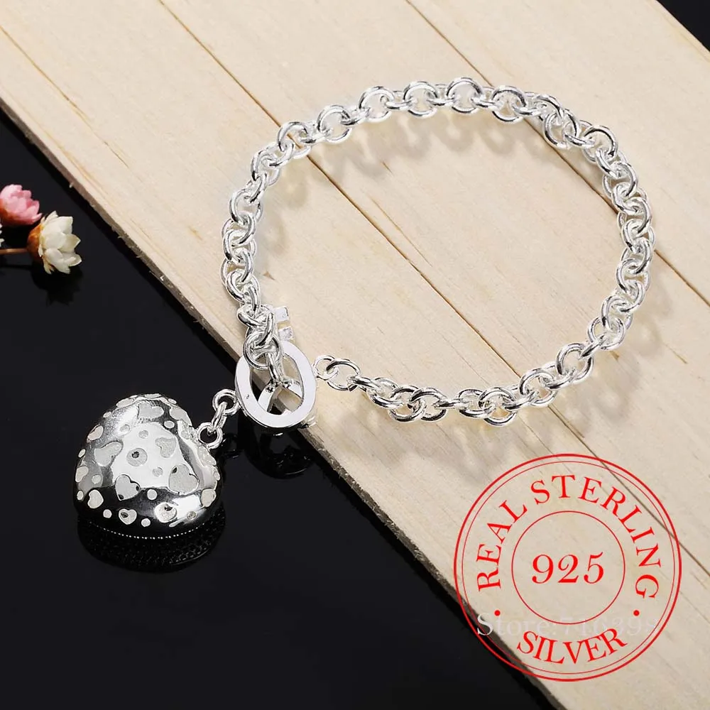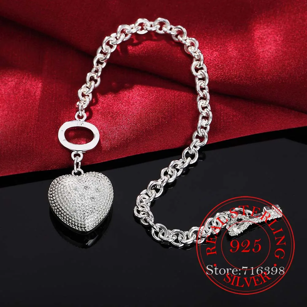 Браслет из стерлингового серебра 925 пробы с подвесками в виде сердца и браслеты в виде цепочки в Корейском стиле для мужчин и женщин