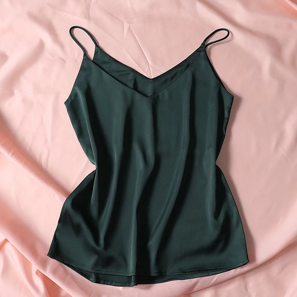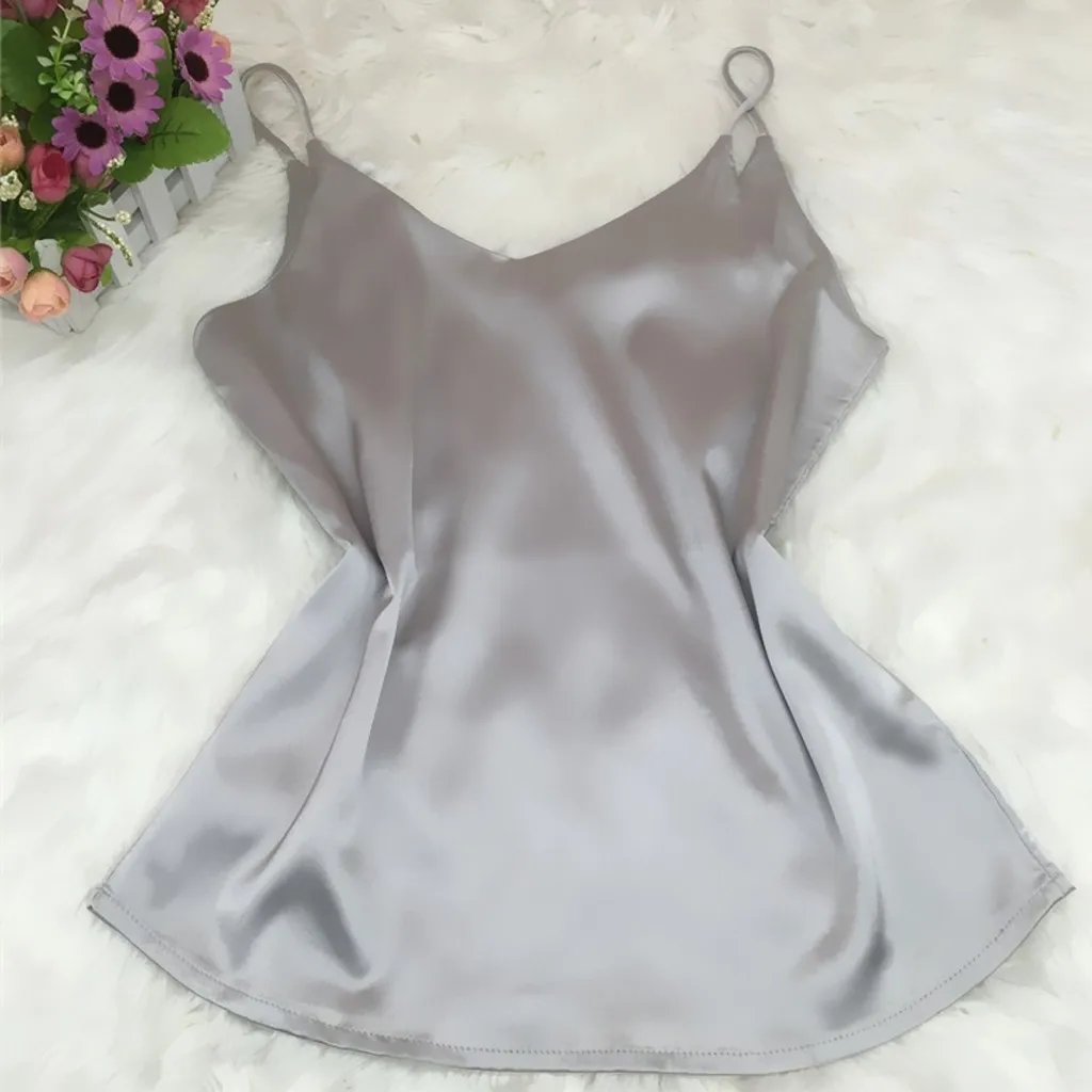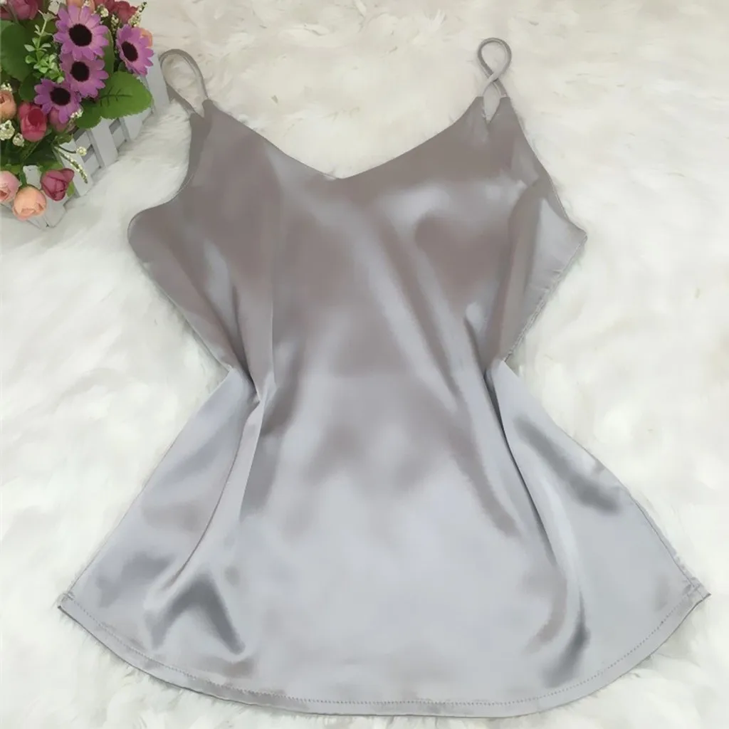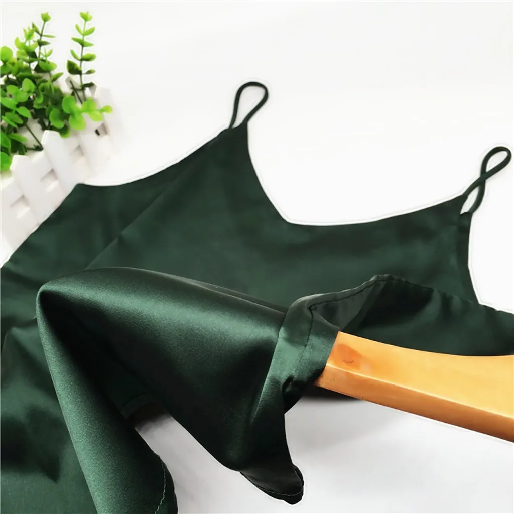 Летние 2020 Атласный топ Женская пижама с коротким рукавом сексуальное с v-образным вырезом на бретелях шелковое платье без рукавов на бретелях topssling Дамское белье, нижнее белье, одежда для сна, размера плюс M-XXL