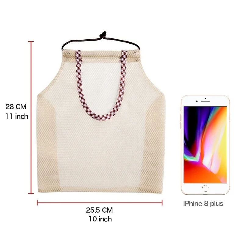 Особенности: Используется усовершенствованная многонитевая нейлоновая сетка, легкая и прочная. Идеально подходит для защиты или хранения мешков для мусора, чеснока, имбиря, лука и т. д. Легкая портативность и удобная в использовании серая сетка настолько четкая, что все могут видеть, что внутри удобно вам при приготовлении пищи на кухне. Эти сетчатые мешки предназначены для поддержания оптимальной влажности и сохранение свежести фруктов и овощей