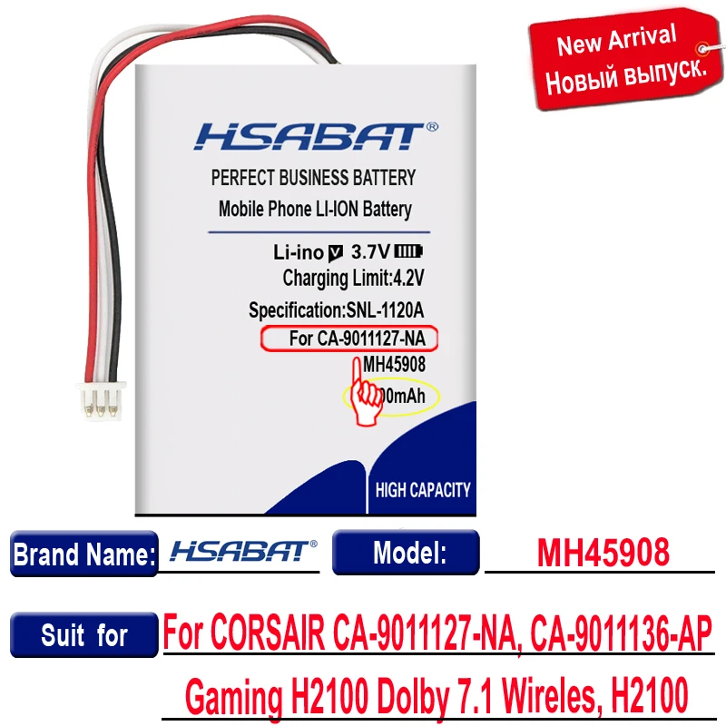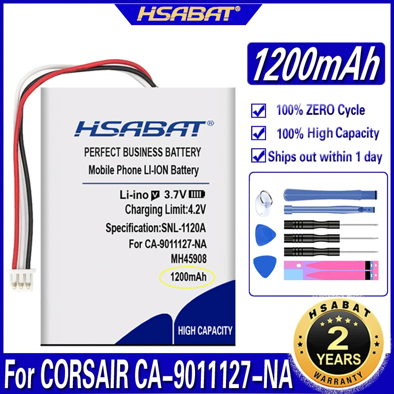 Аккумулятор HSABAT 1200 мА ч, для беспроводной игровой гарнитуры CORSAIR CA-9011127-NA 9011136-AP, H2100, Dolby 7.1