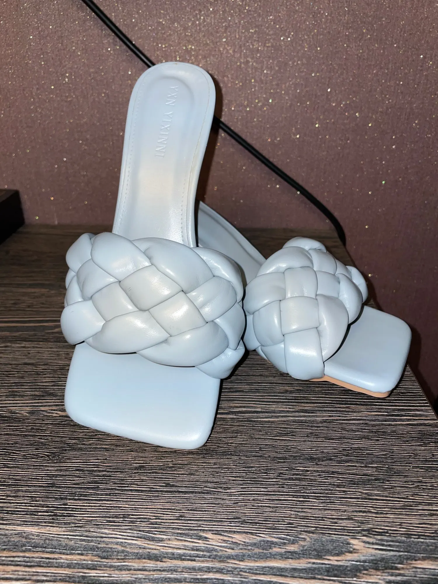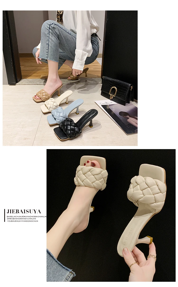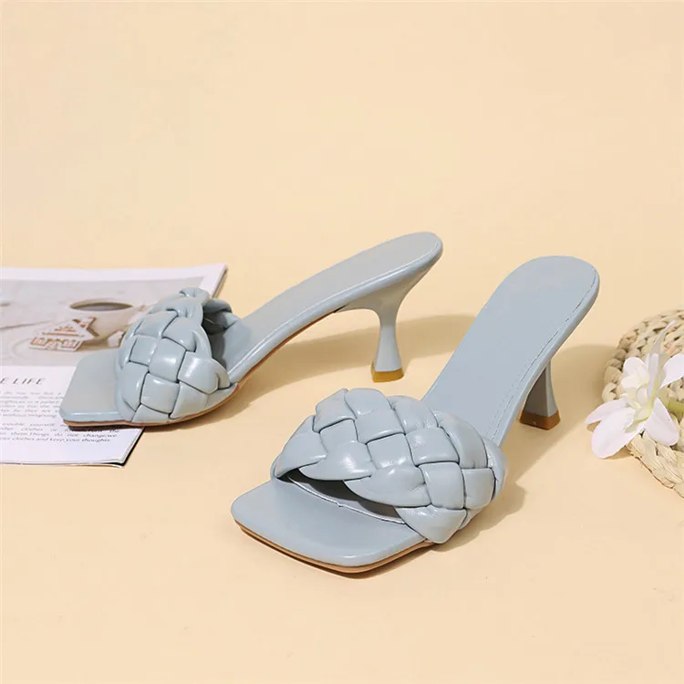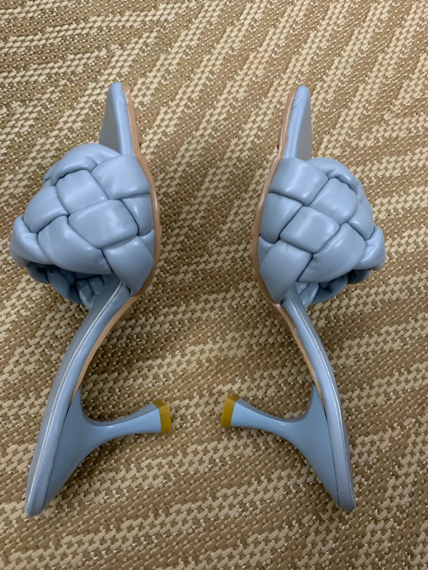 Мюли женские на каблуке 8 см, Роскошные туфли-лодочки, индивидуальная плетеная обувь для отдыха, офиса, тапки для выпускного вечера, синие