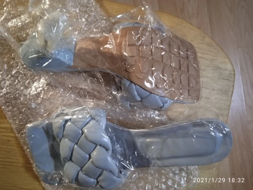 пришли шлепки быстро.понравились.удобные.на росс 36-37 подошли.но каблуки все поцарапанные.так что внешний вид не очень.