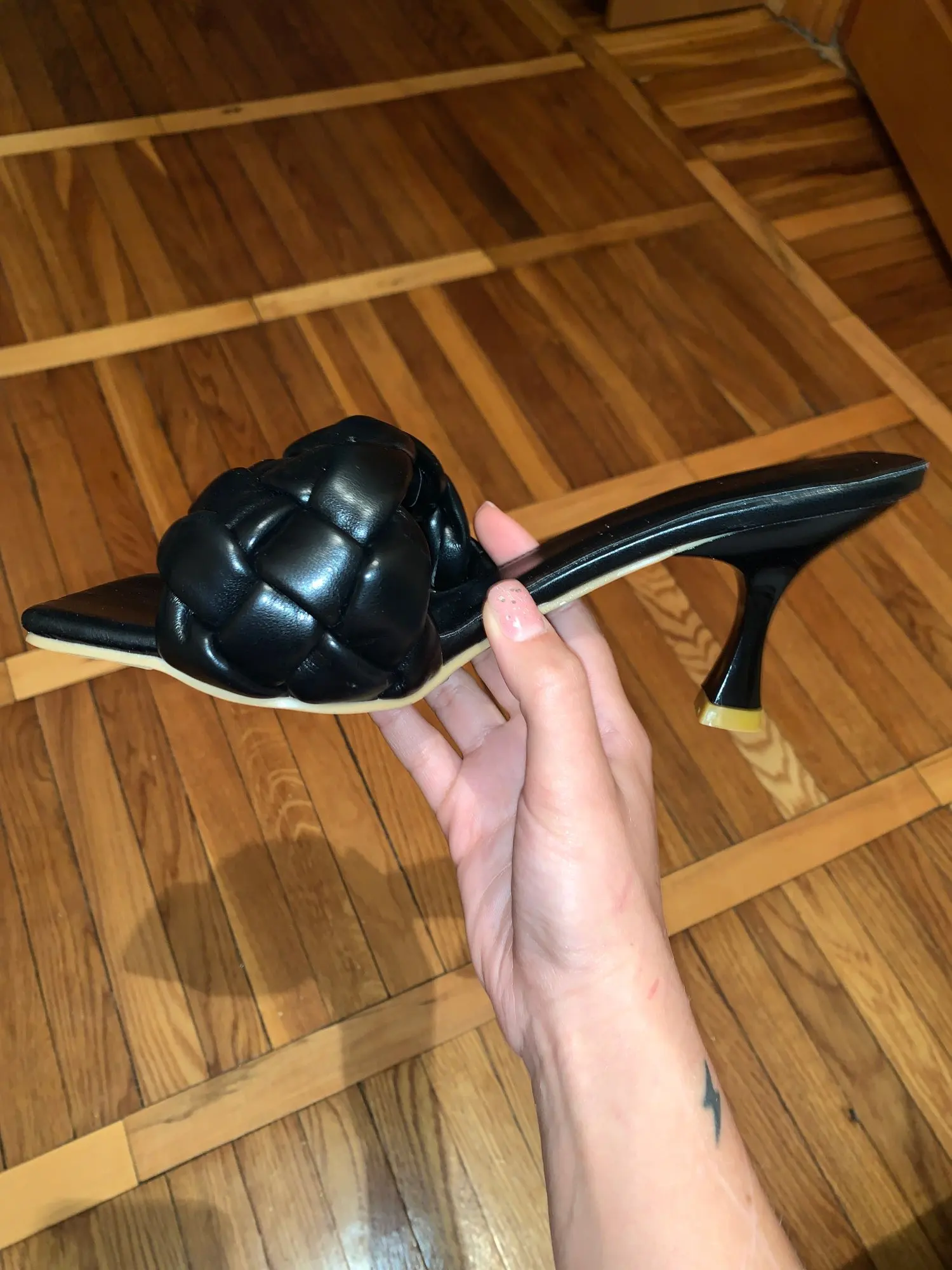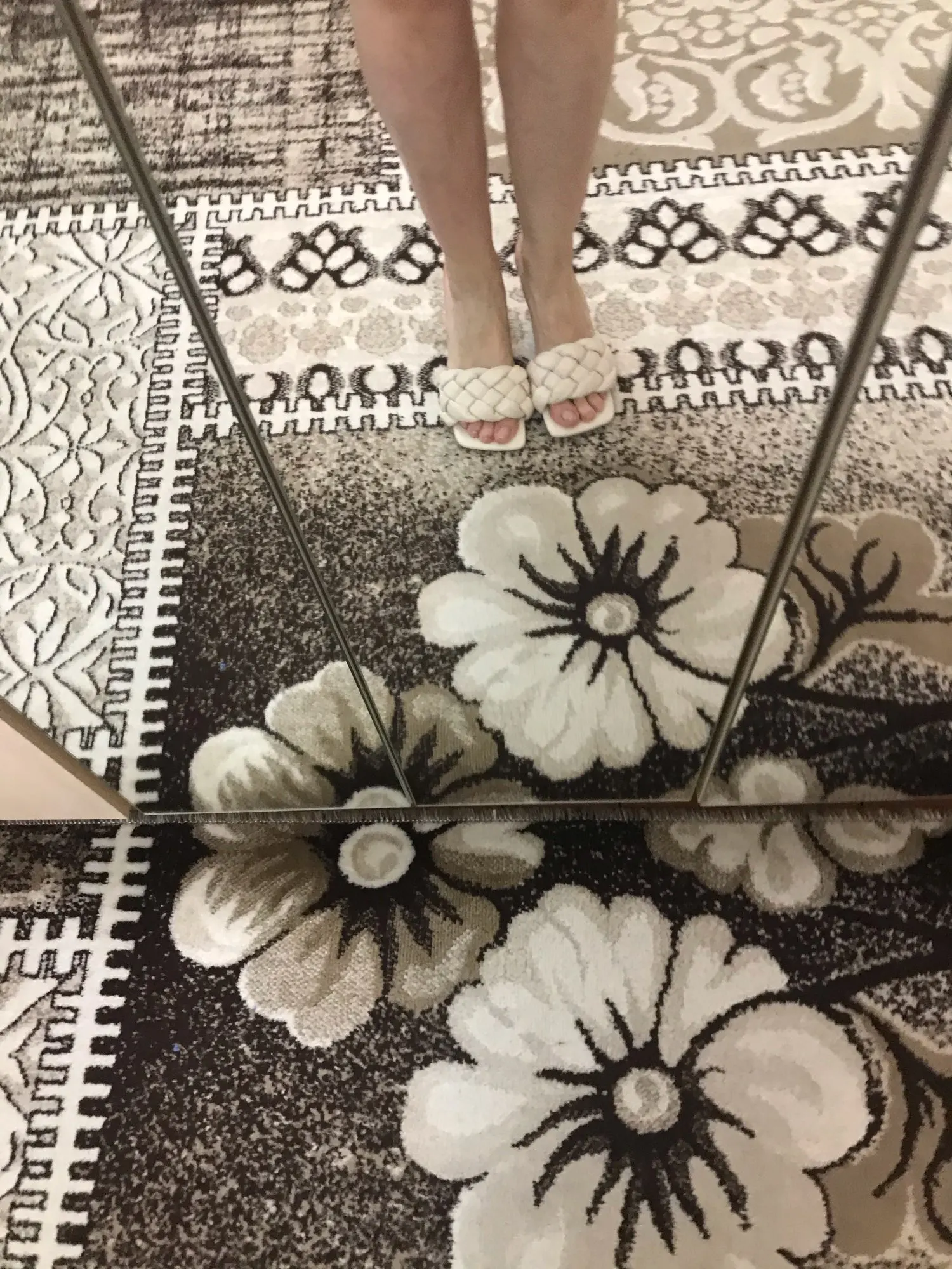Мюли классные, доставка 11 дней (просто огонь). Всё соответствует описанию. По размеру идеально подошли (стопа 23см, брала 23,5см) Единственное, что не очень понравилось - попросила проверить качество товара и цвет перед отправкой, но мюли пришли с царапинами на каблуке. В целом, не критично, но обидно. Спасибо)