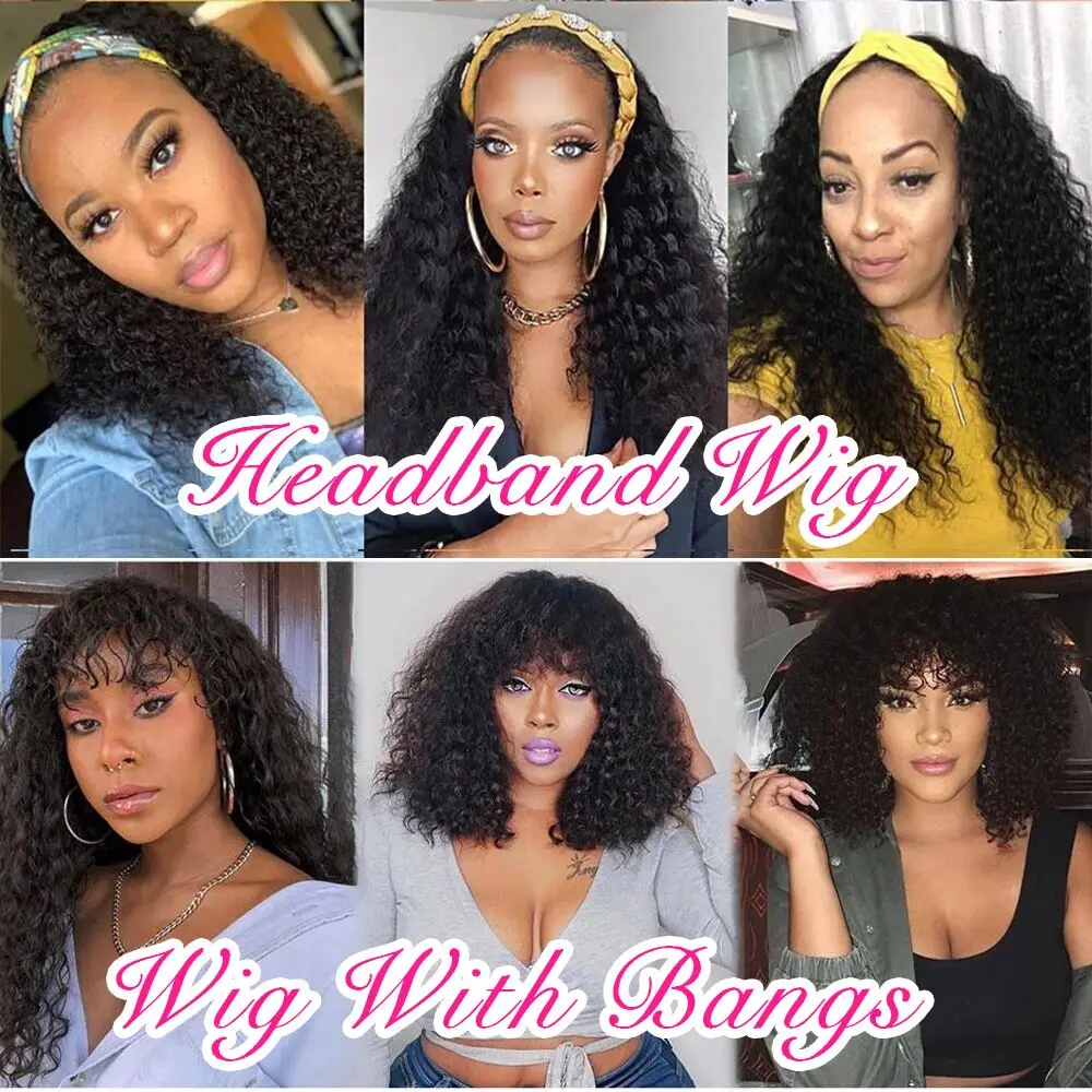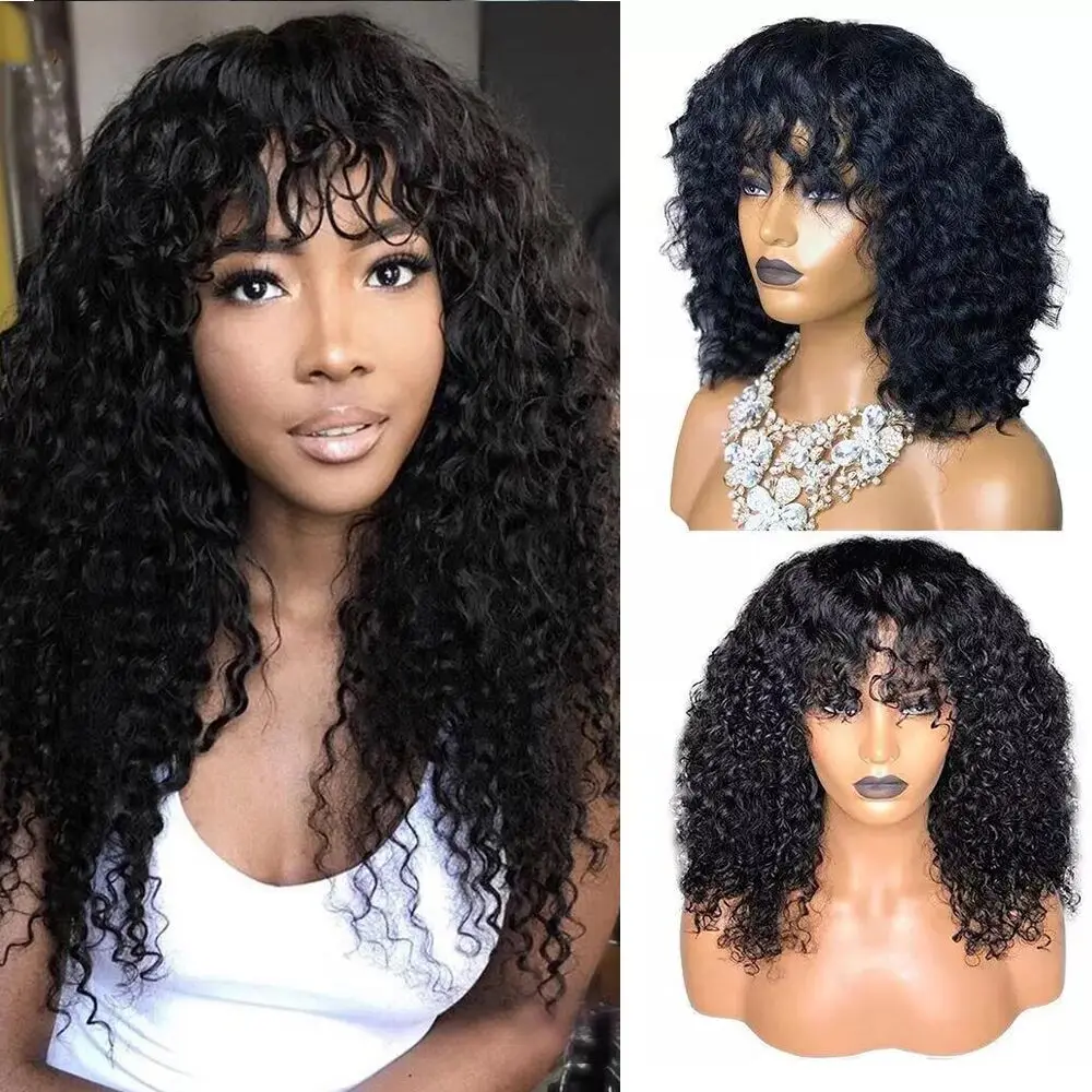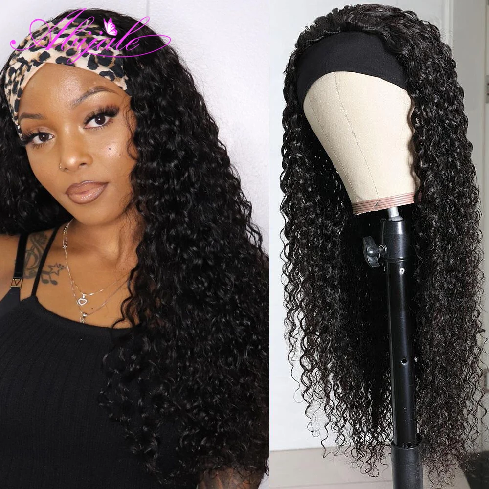 Abijale кудрявые парики с челкой Полный парик фабричного производства парик с головной повязкой вьющиеся для черный Для женщин волосы Remy
