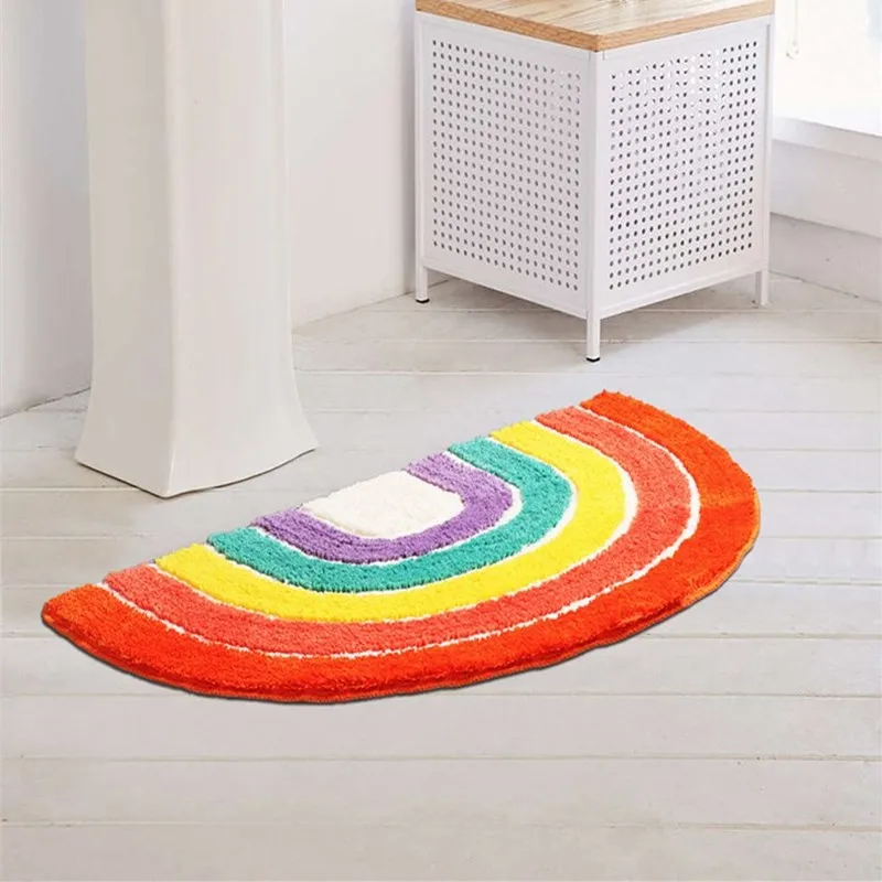 Полукруглый коврик для ванной с радужным рисунком, коврик для входной двери, нескользящий коврик для ванной, коврик для гостиной, напольный коврик, домашний ковер для ног 50*80 см