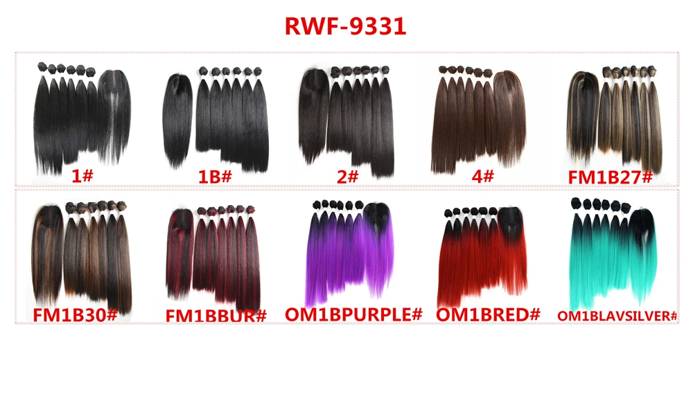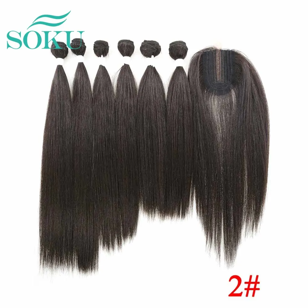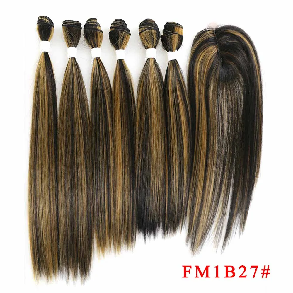 Омбре коричневый цвет яки прямые синтетические волосы пучки с закрытием 14-18 дюймов соку высокотемпературное волокно пучок волос