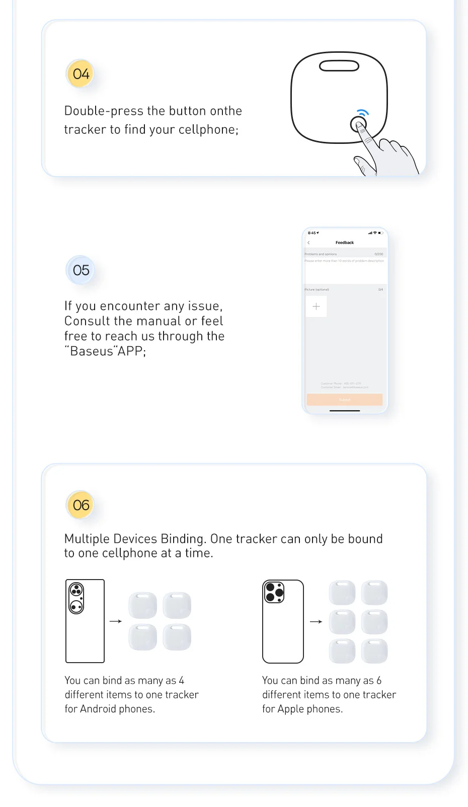 Мини-смартфон Baseus, Bluetooth, GPS, с функцией поиска ключей