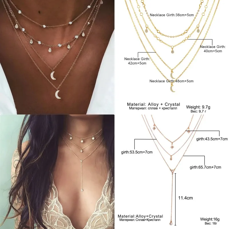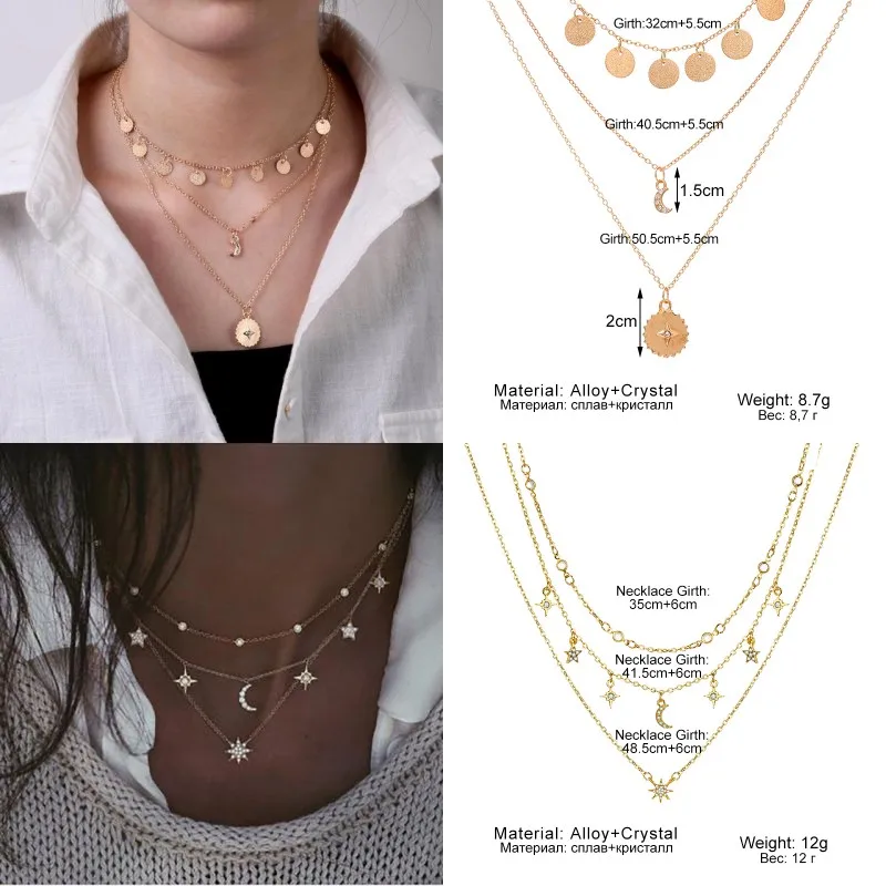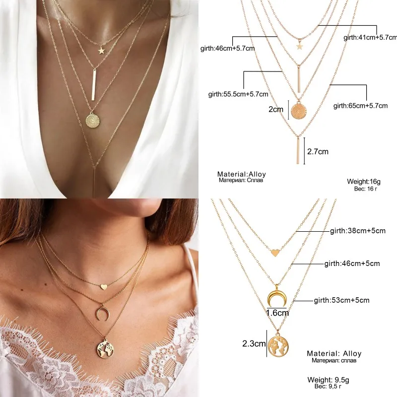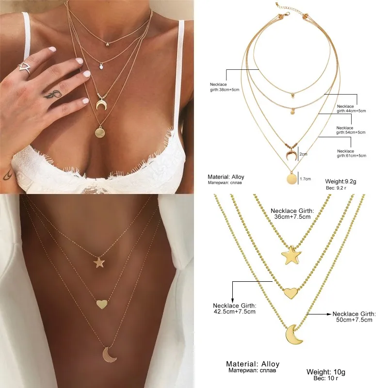Богемное Золотое колье-чокер с Луной для женщин цепочка массивное ожерелье Звезда карта сердце кулон ожерелья Бохо ювелирные изделия подарок
