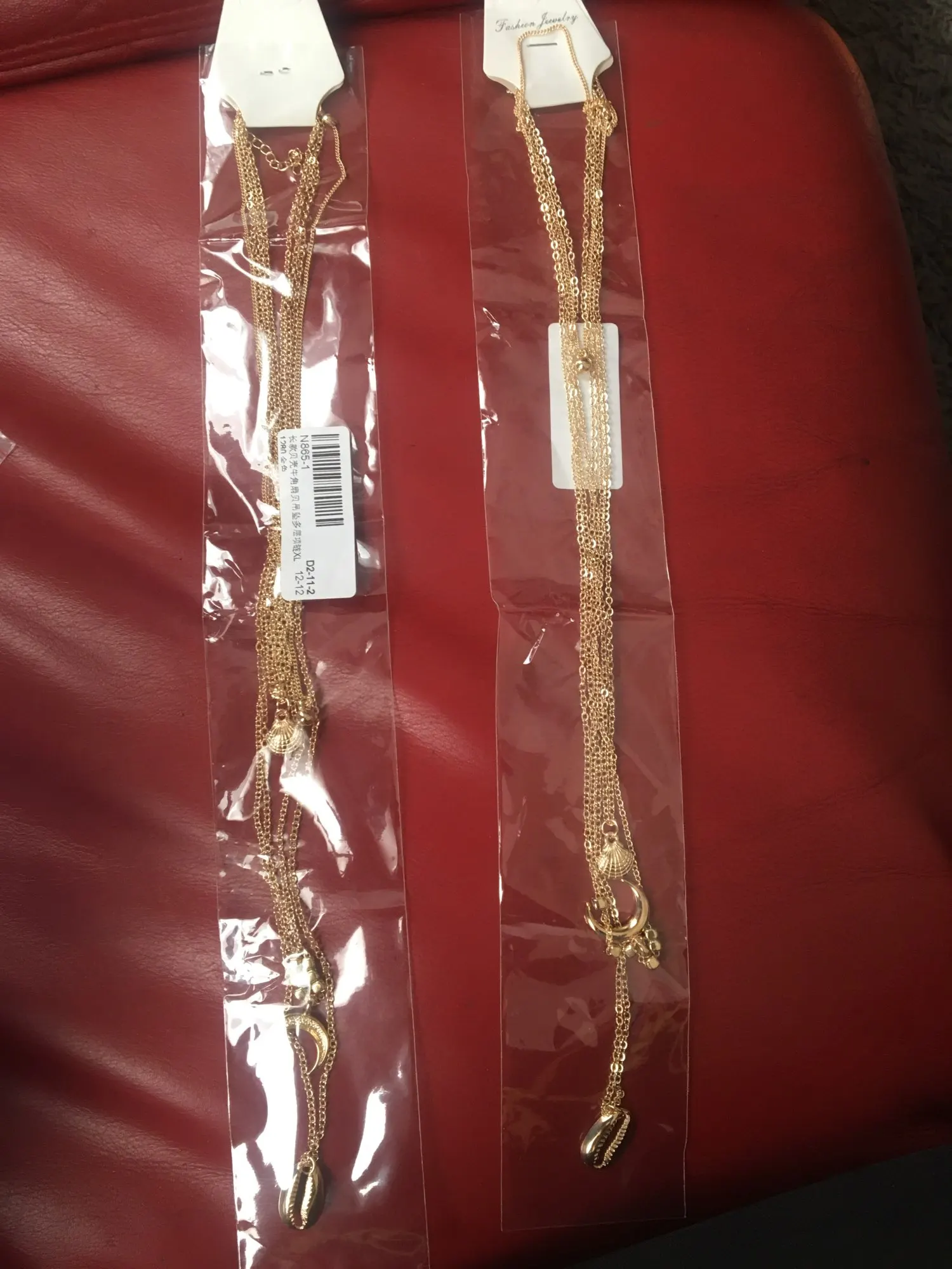 The item arrived in time, pretty much as in the picture- I love the length of the necklaces, but it is a little more yellow than I’d like it to be. Still, I give it 5 stars.