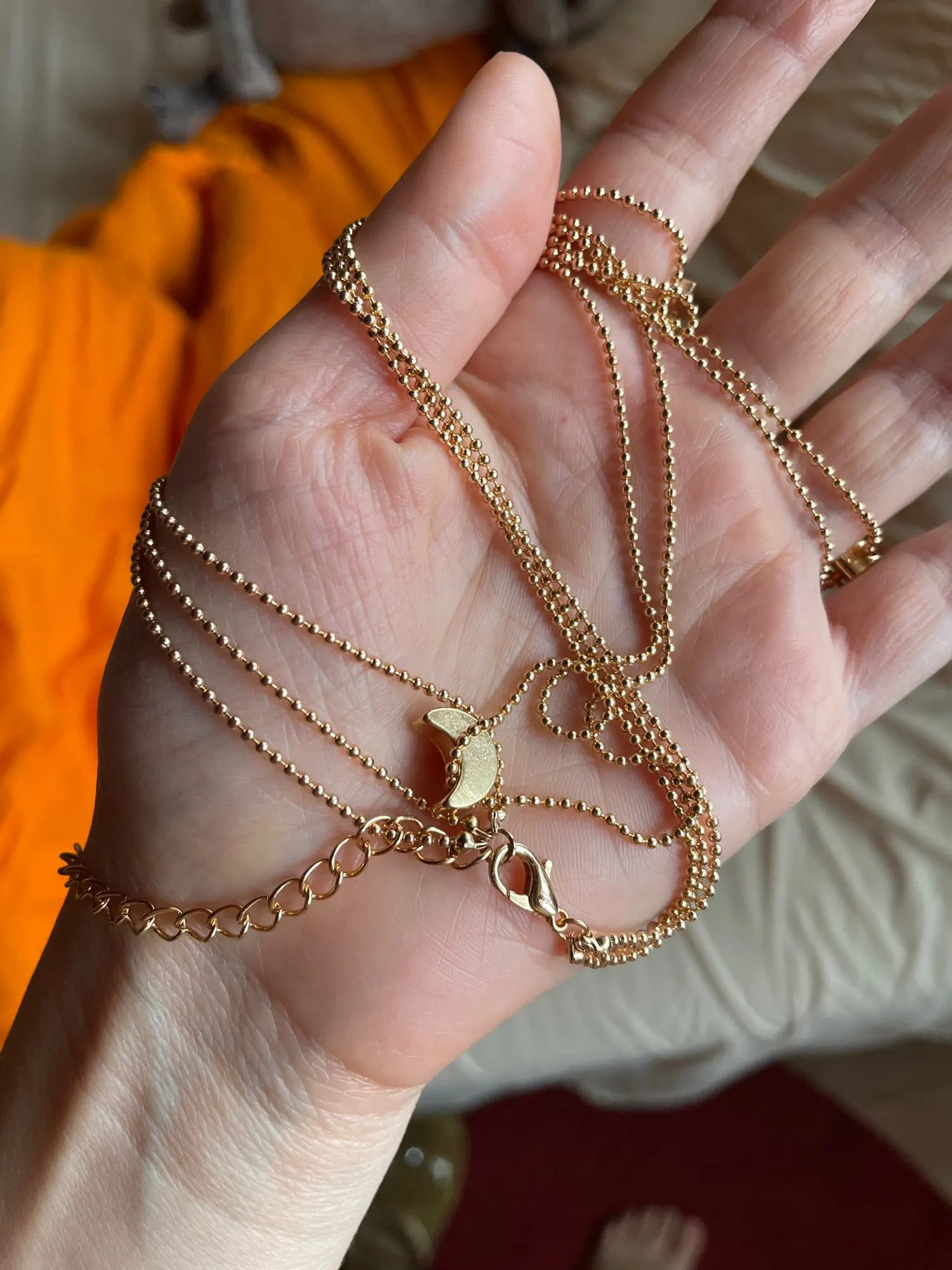 Думала, что каждая из цепочек отдельно цепляется, оказалось, что одновременно три на одной застежке, , а так пришло быстро и без дефектов