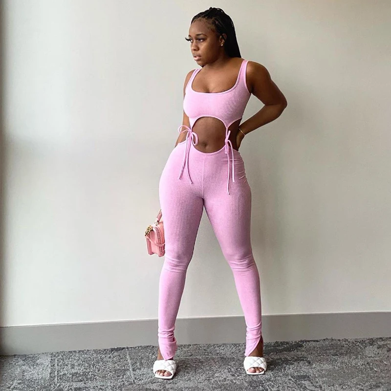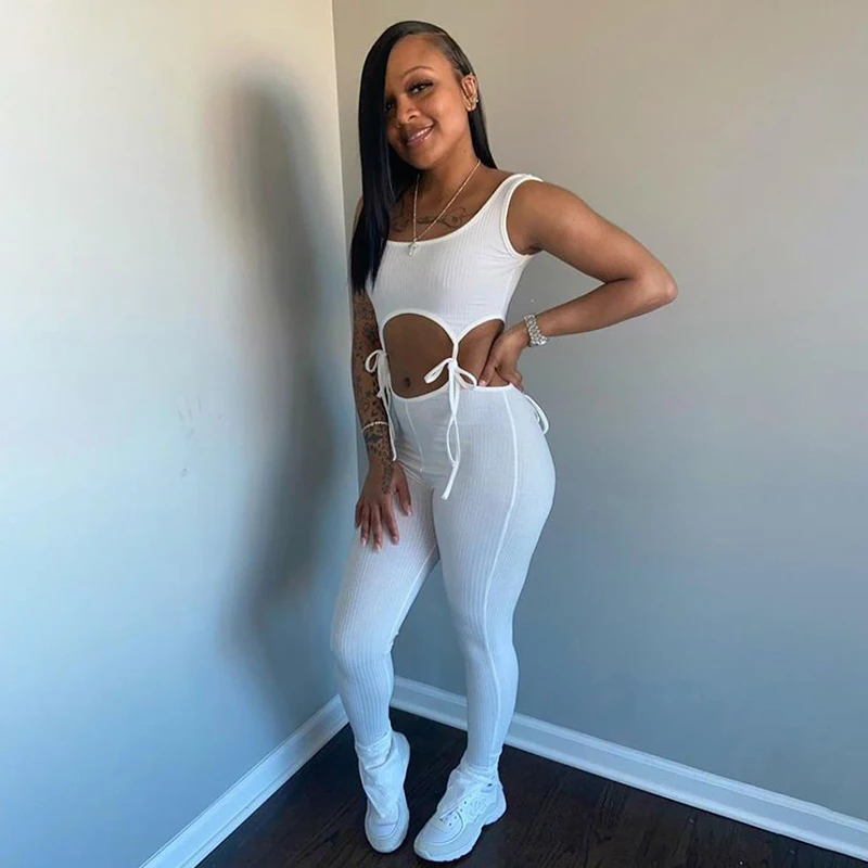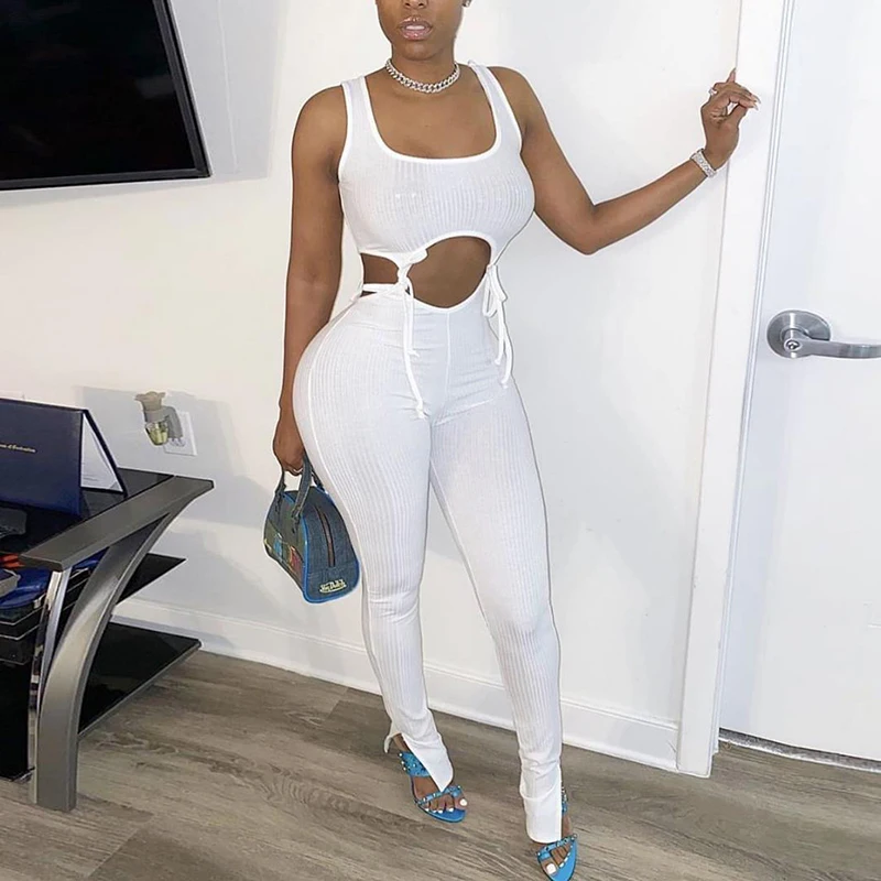 Женский спортивный костюм-двойка, облегающий топ без рукавов и штаны