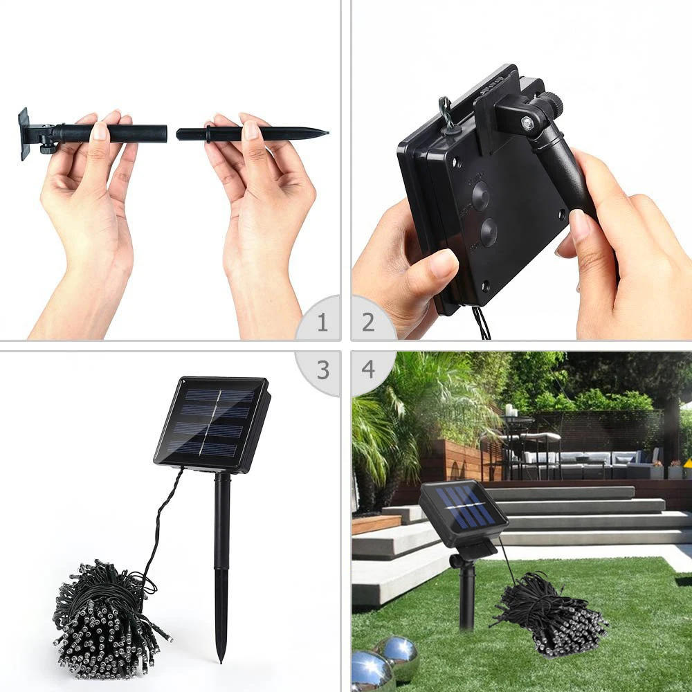 1. Этот чудесный струнный светильник освещается ночью, идеально подходит для украшения вашего сада, патио, лужайки, крыльца, ворот, двора и т. д.2. Супер долгое время работы, он может непрерывно работать более 8 часов ночью, если панель поглощает достаточно солнечного света в течение дня.3. Водонепроницаемый, подходит для использования в помещении и на открытом воздухе.4. Панель на солнечных батареях стоит 20 см садовый шип. С включением/выключением, переключателями режимов.5. С 2 переключателями, один-режим (мигающий режим преобразования переключателя), другой-включение/выключение (после включения выключения, может автоматически управлять и заряжать светильник).