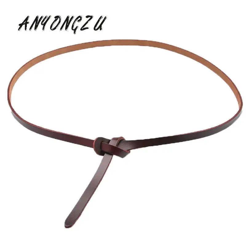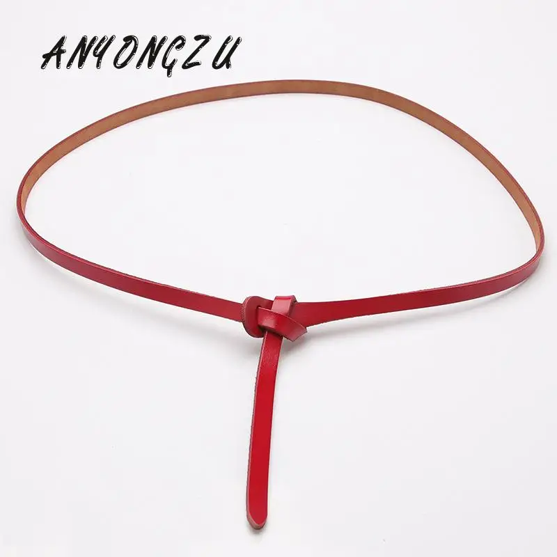 Женский ремень новый Тип тонкий из натуральной яловой украшения платье с галстуком-бабочкой с узелком кожа, востановленная древним способом натуральная обувь белого, красного и черного цветов