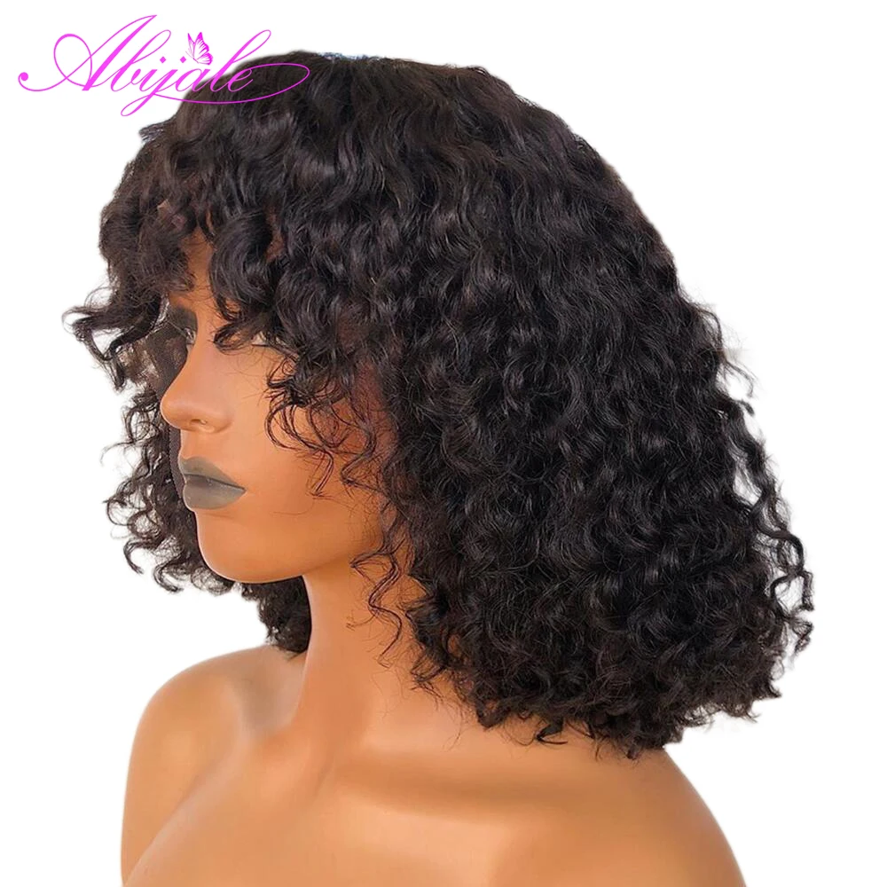 Волнистые короткий Боб 100% человеческие волосы с челкой полный фаб...