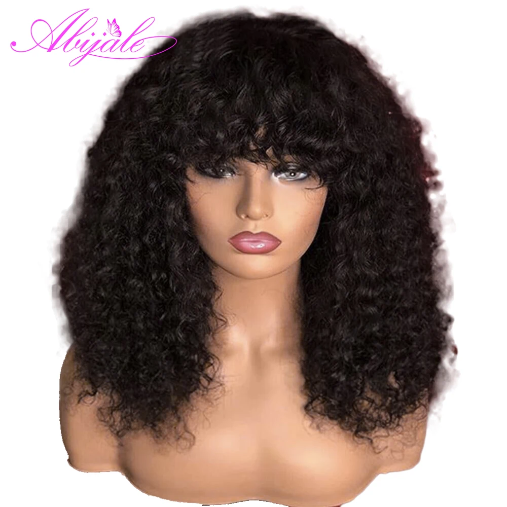 Парики из натуральных бразильских волнистых волос с челкой машинное...