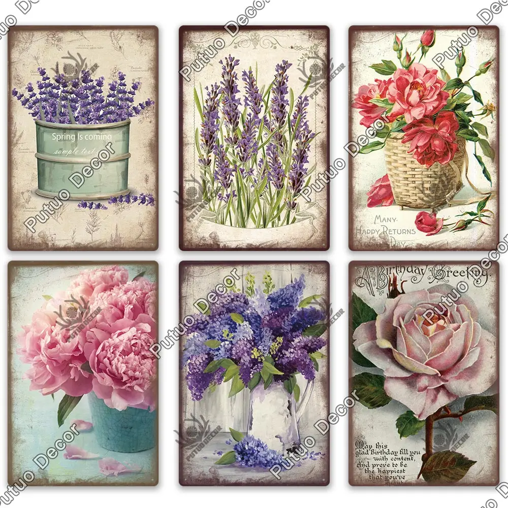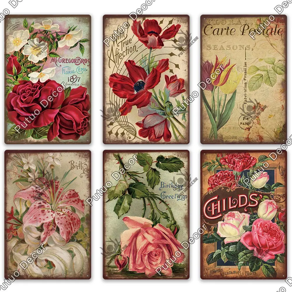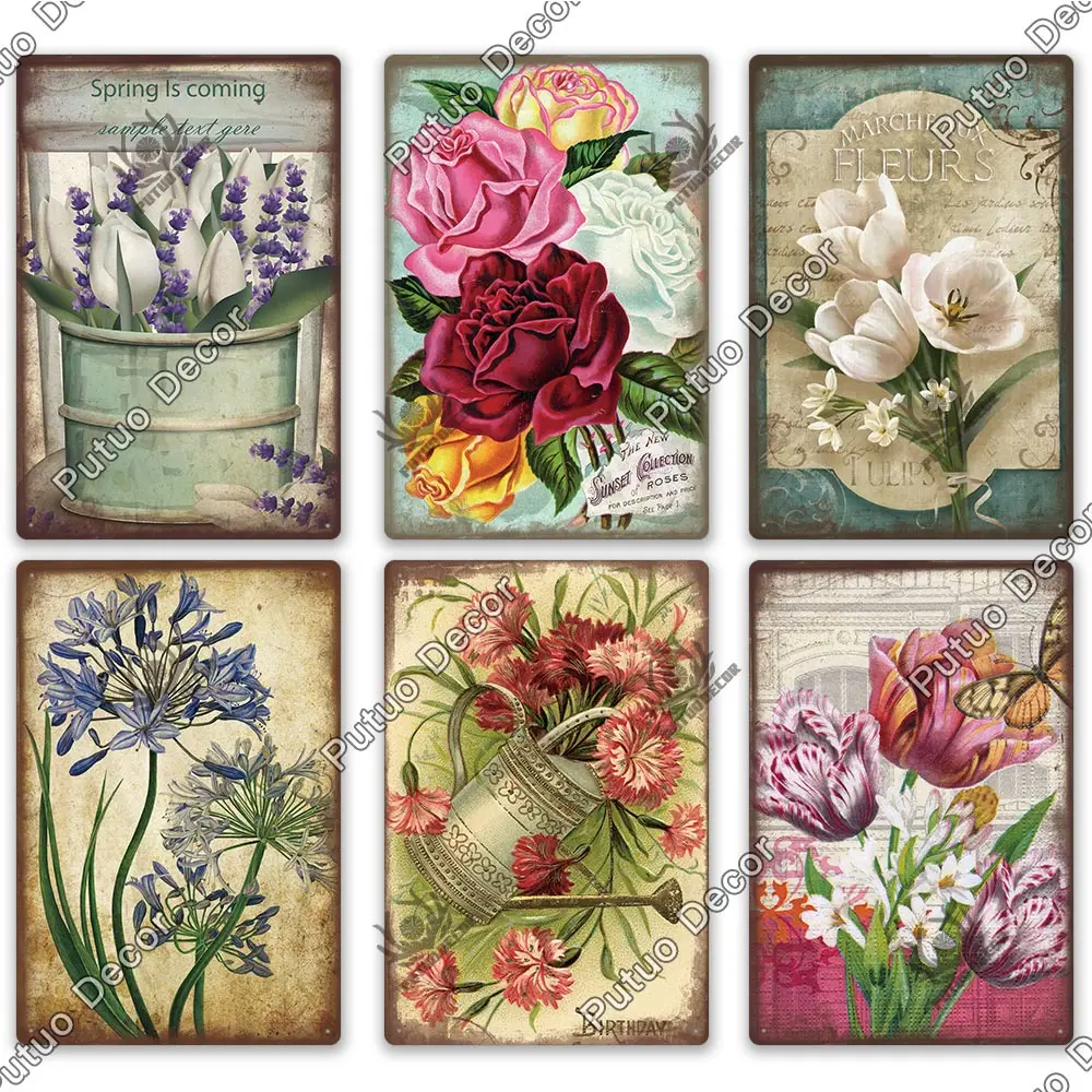 Декор Putuo, ВИНТАЖНЫЙ ПЛАКАТ с цветами, металлический жестяной зна...