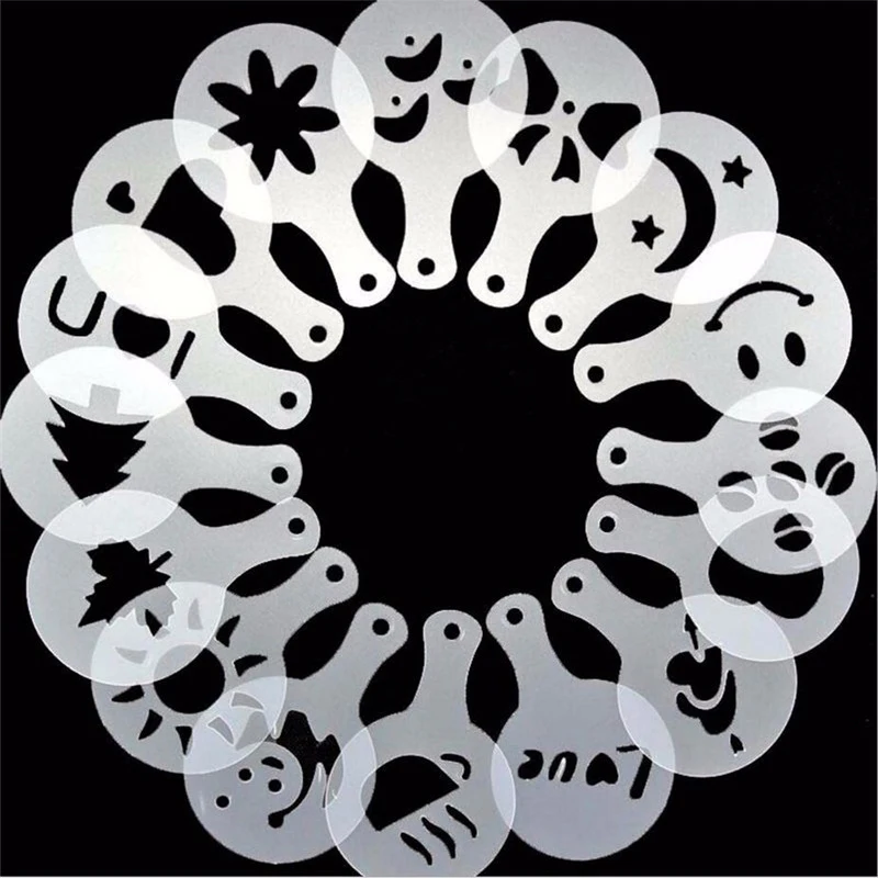 1 шт., трафарет из нержавеющей стали для кофе, 16 шт.