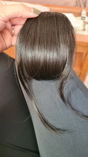Мне нравится! Хотелось бы, чтобы вещь была короткой, но она нормальная, очень гладкая и блестящая. Люди даже не знают, что это фальшивая челка! Челка пришла вовремя!