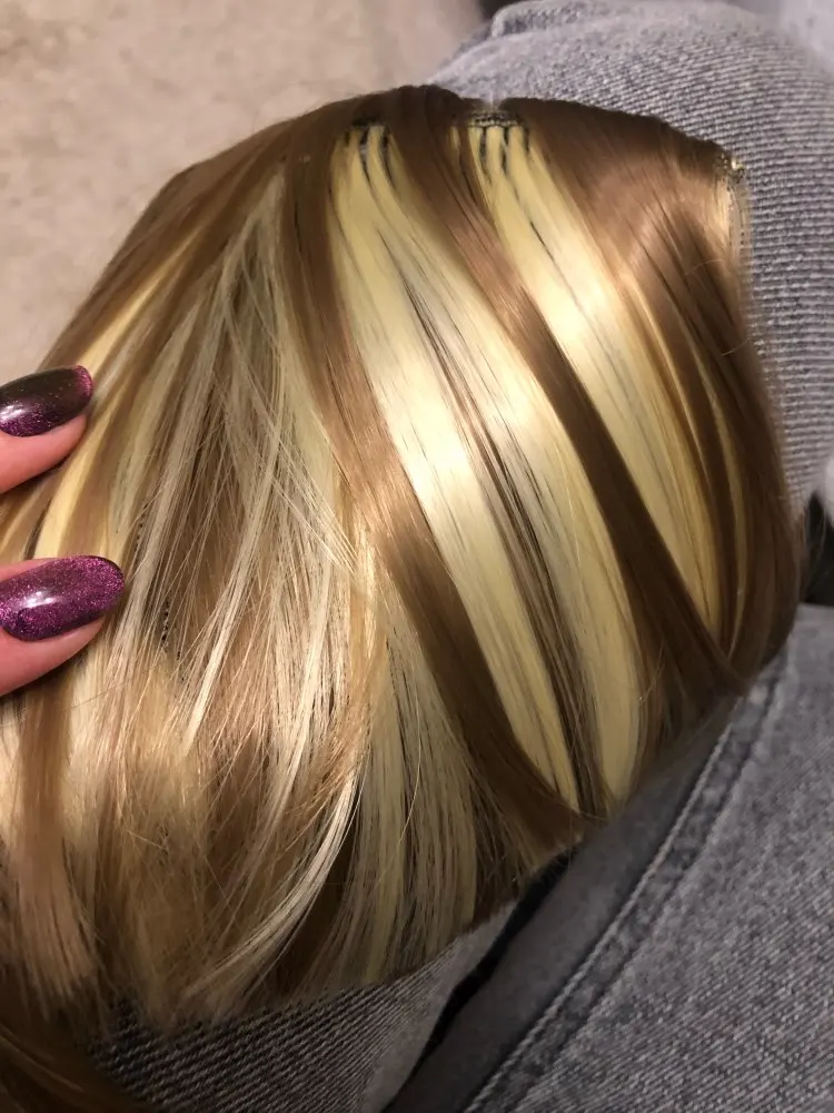 Я быстрая, качество довольно хорошее для синтетических волос, и цвет выглядит очень похожим на мой натуральный, поэтому он выглядит хорошо. Что если я использую его только с повязкой на голову или другими аксессуарами, чтобы замаскировать корень.